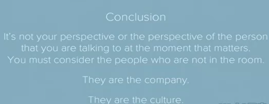 Ben在最后引用了Billion Dollar Coach Bill Cambell的话,管理者必须擅长从不同视角看问题,特别是员工的角度。