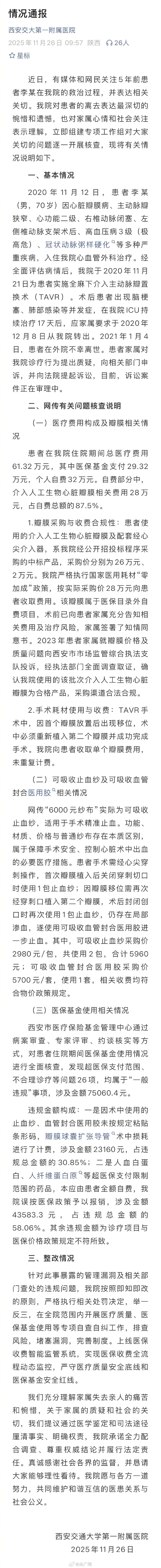 据央广网,西安交通大学第一附属医院11月26日发布情况通报: