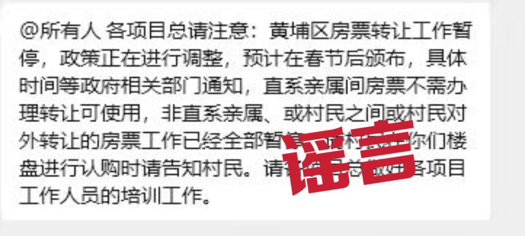 近期,网上流传“黄埔区房票转让工作暂停”。12月31日凌晨,“黄埔安居”微信公众号发布名为《关于澄清黄埔区城中村改造房票相关不实言论的公告》,称流传的相关信息与实际情况不符。