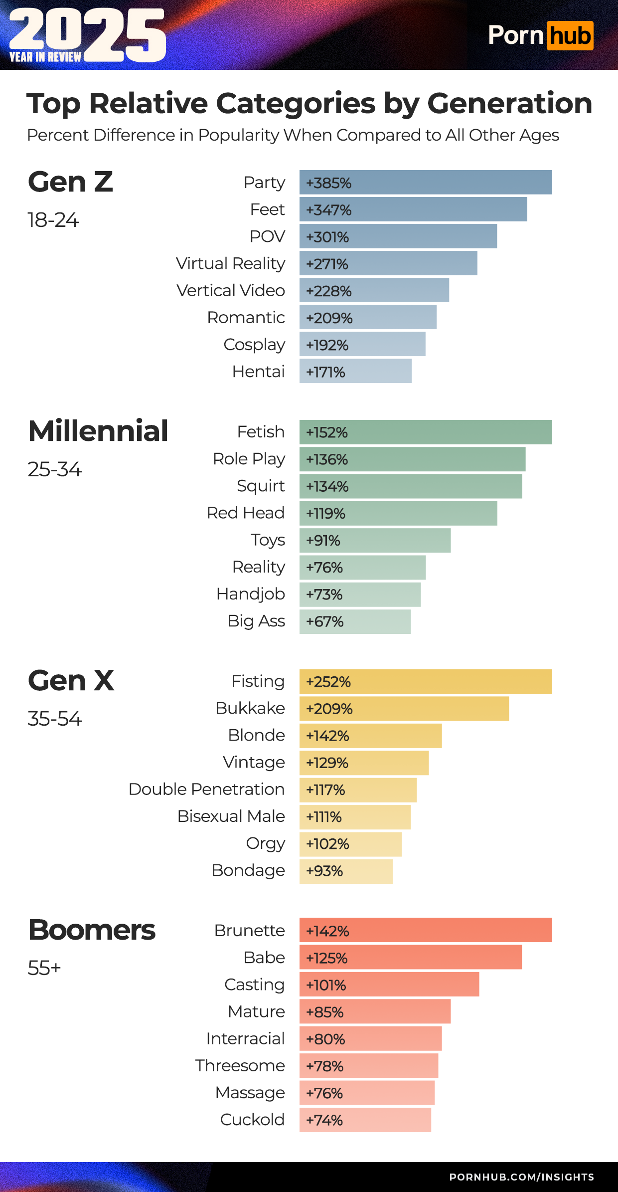 Pornhub发布2025年回顾报告:Z世代爱演,女性观众增加