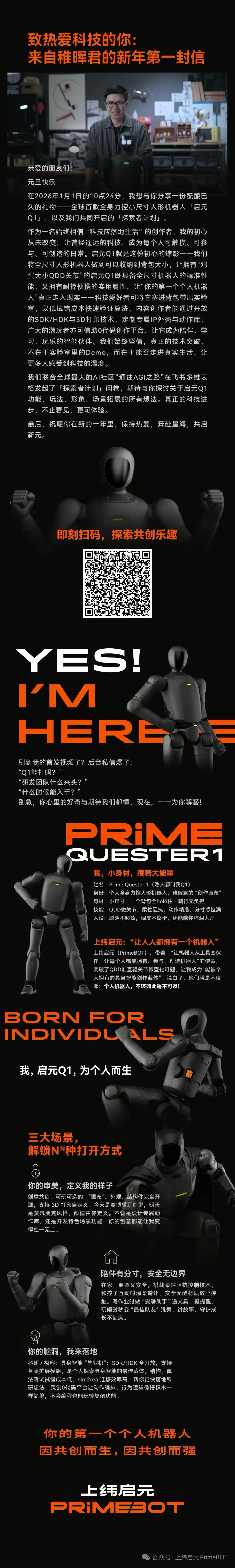 近日,智元联合创始人兼CTO、上纬新材董事长彭志辉(稚晖君)发布全球首款全身力控小尺寸人形机器人“启元Q1”,与此同时,稚晖君还宣布上纬新材将以“上纬启元”品牌正式进军个人机器人赛道,并首次对外明确这一业务方向。