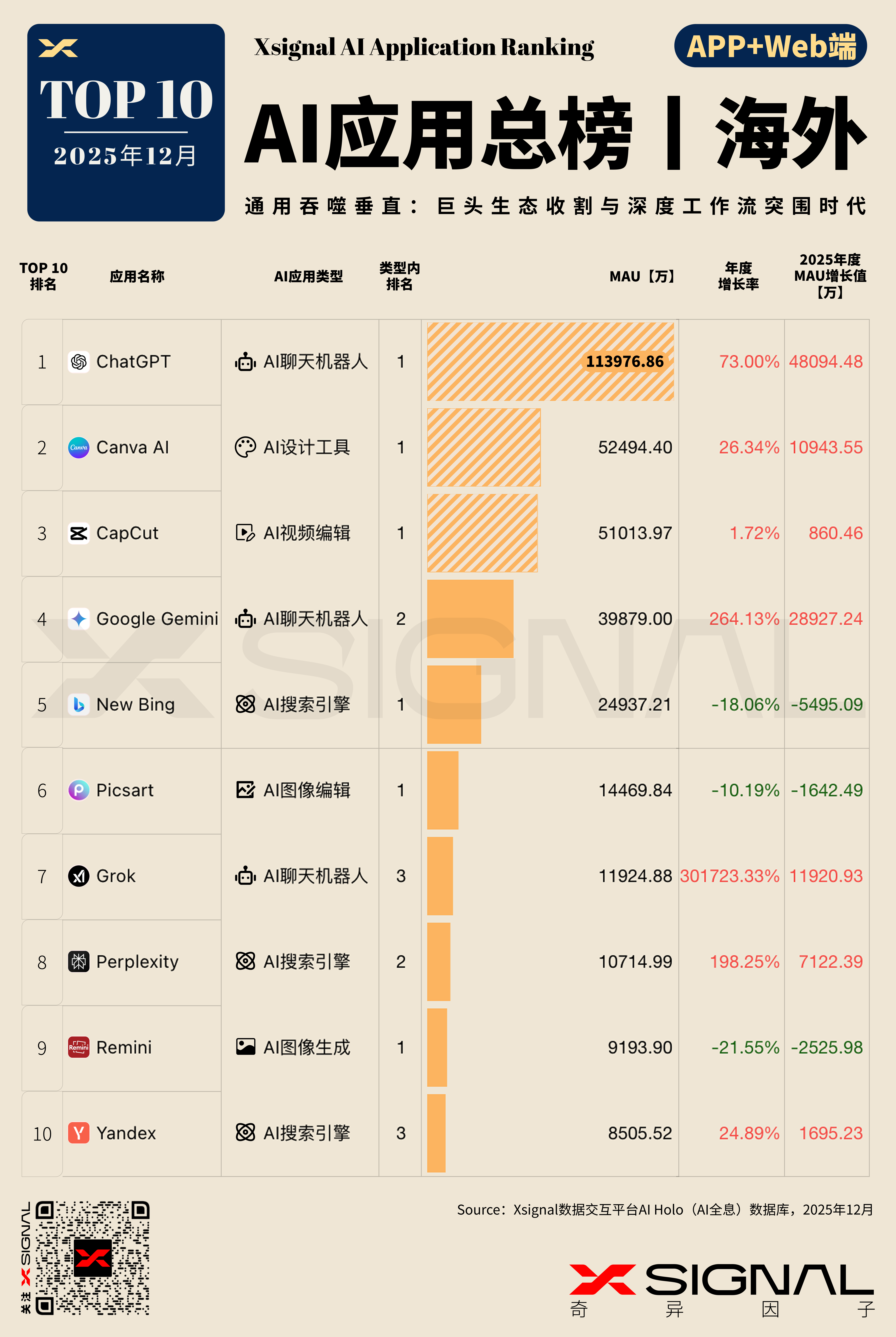 依托 Xsignal AI Holo(AI 全息)数据库,X博士为您献上全球 AI 应用差异化深度研报: