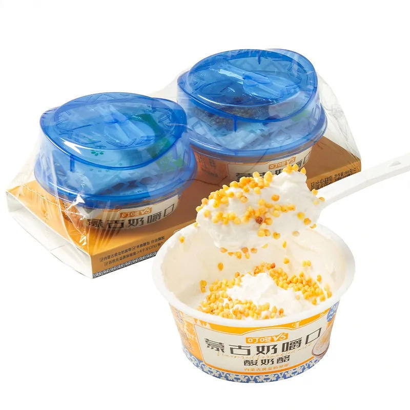 近日,叮咚买菜旗下叮咚V5推出「蒙古奶嚼口酸奶酪」新品。据官方介绍,新品采用内蒙草原生牛乳和菌种,经传统工艺低温慢发酵制成,质地细滑,口感浓郁微酸、奶香醇厚,可搭配新品内独立小包装的炒米、白糖食用。