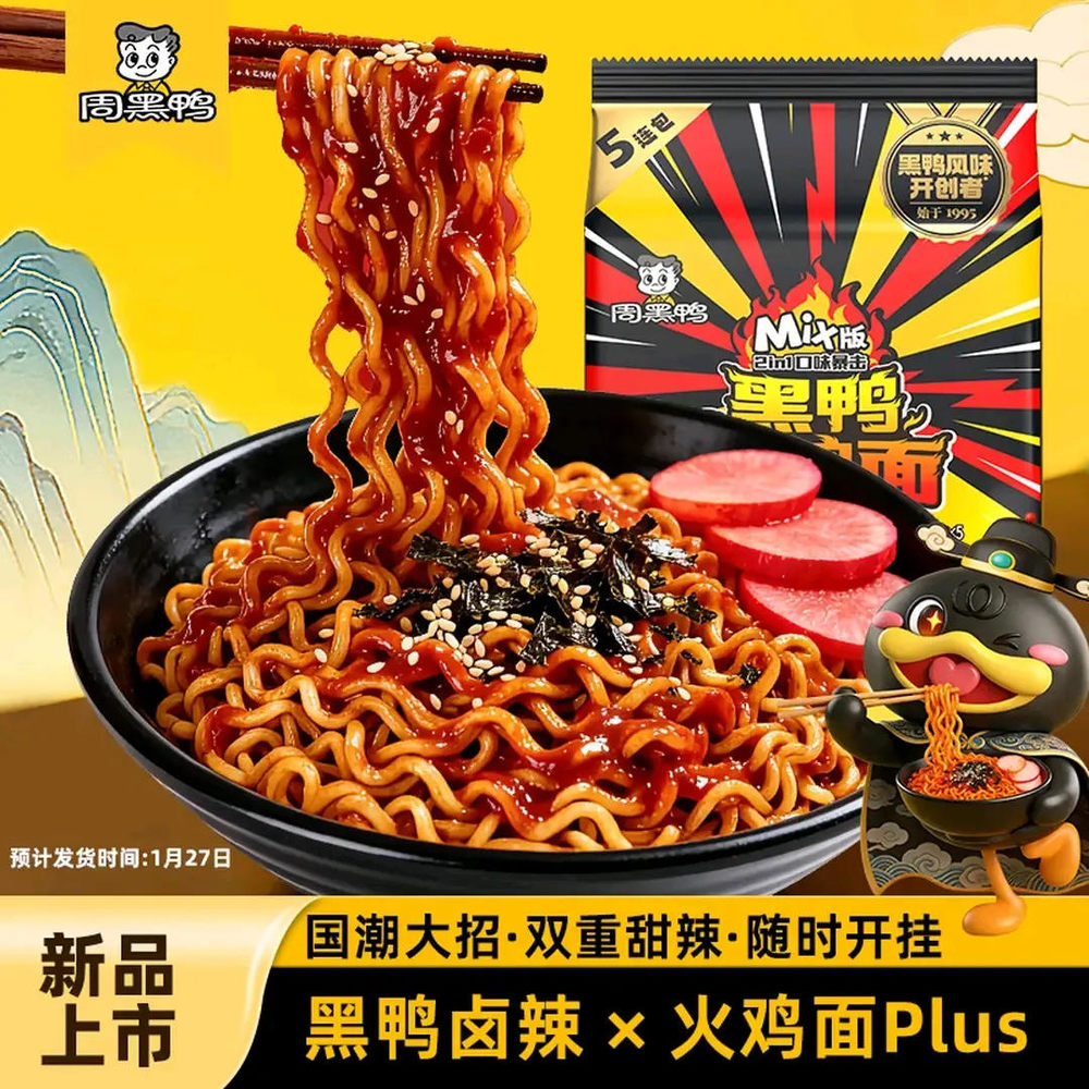 4、双重甜辣来袭!周黑鸭上新「黑鸭火鸡面」