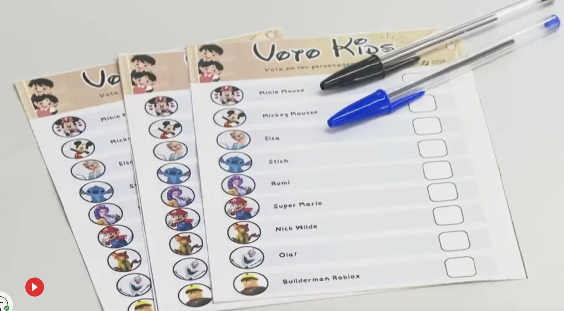 儿童选票上写着:“请投票选出你最喜欢的卡通角色。”