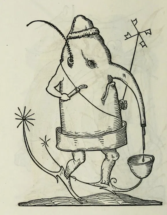 1565年,巴黎书商兼出版人理查·布勒东推出了一本名为《庞大固埃的诙谐梦境》的书,这是一部由120幅怪诞木刻组成的画册。
