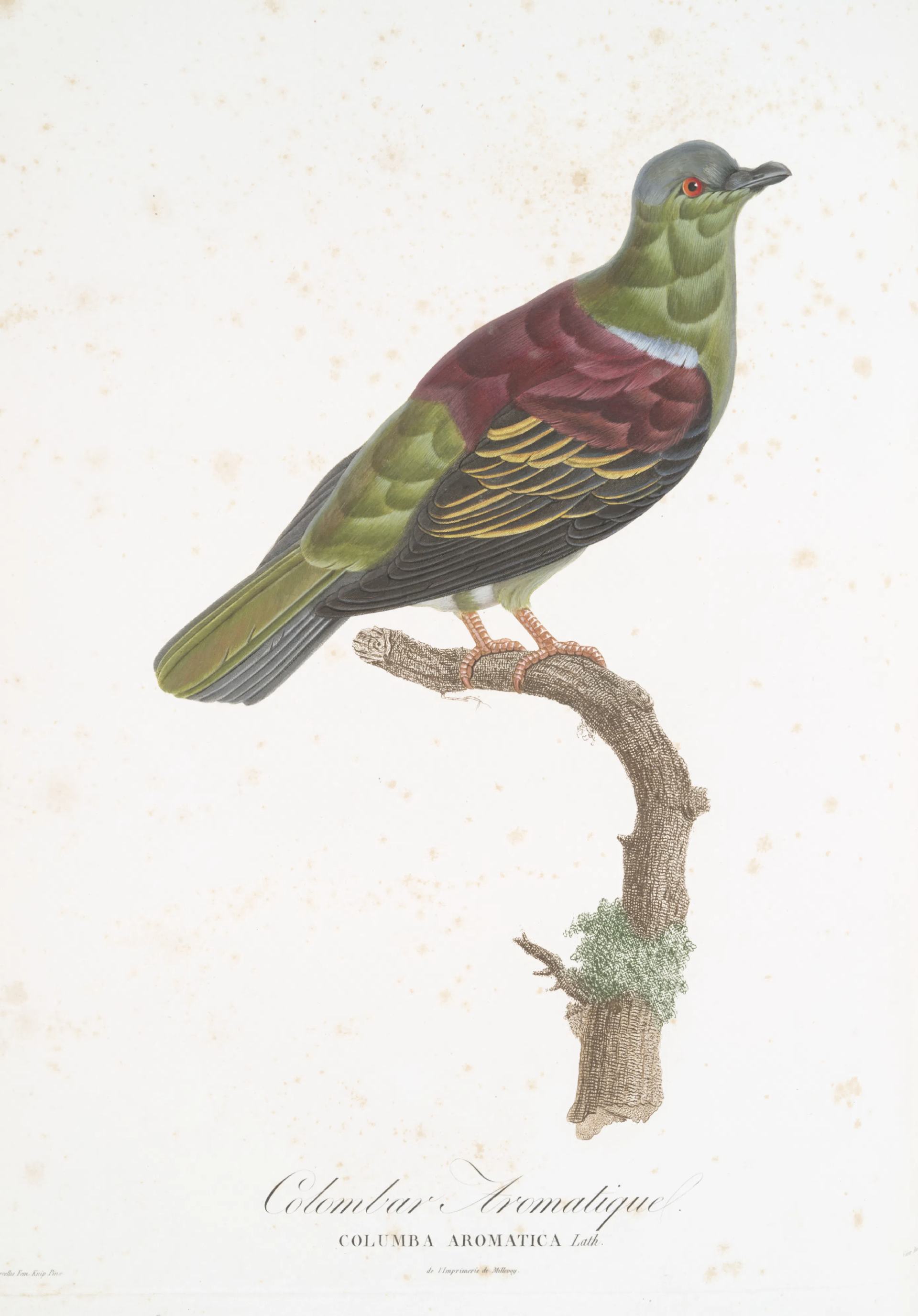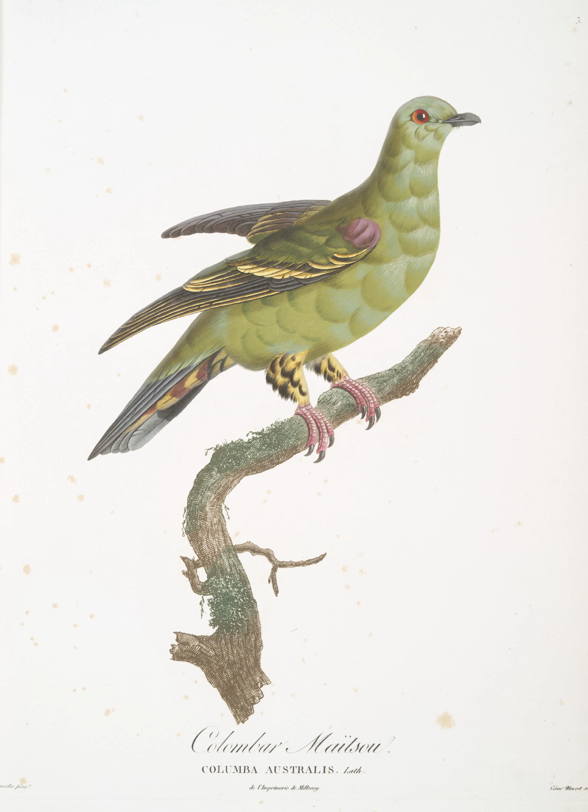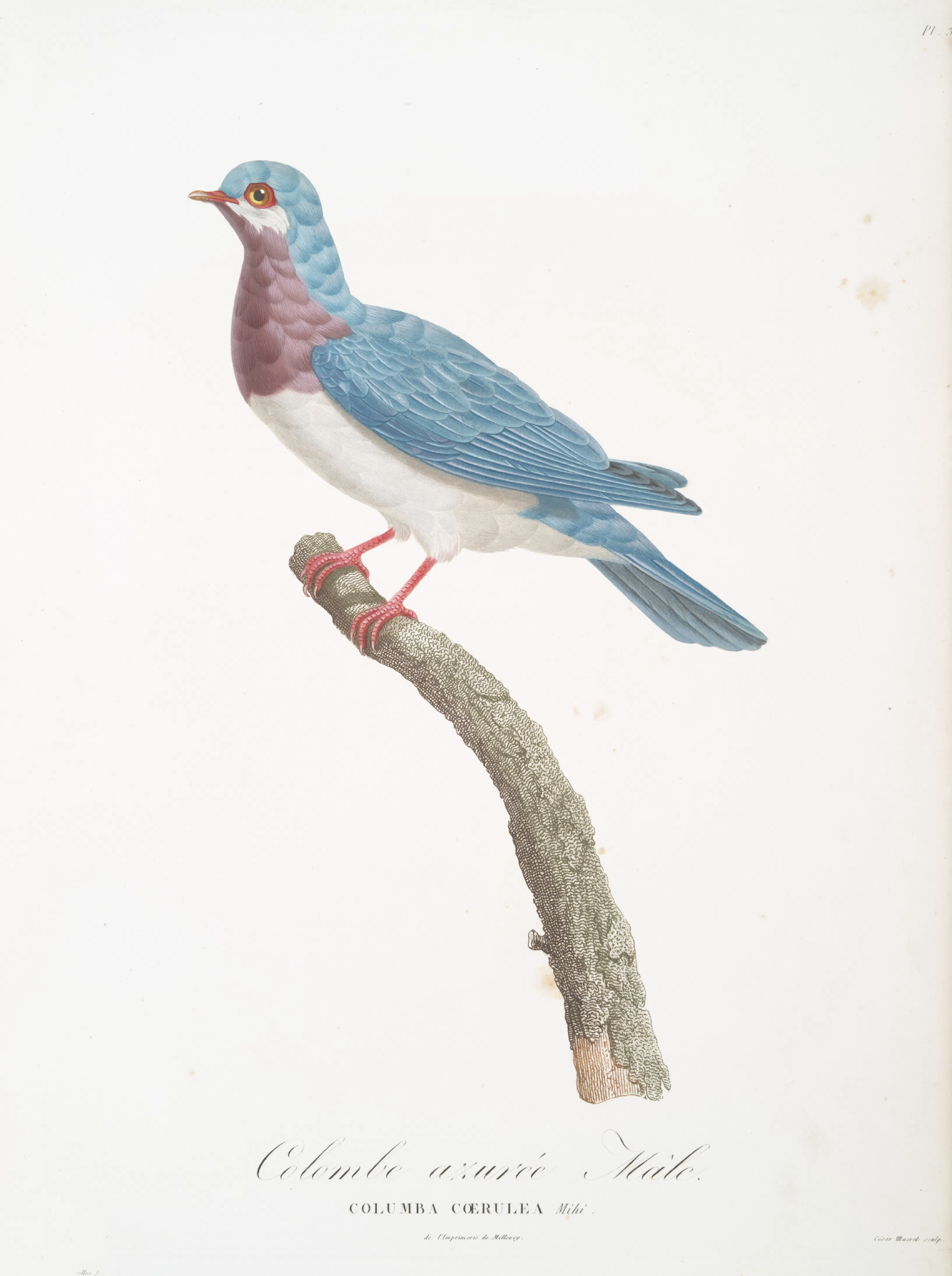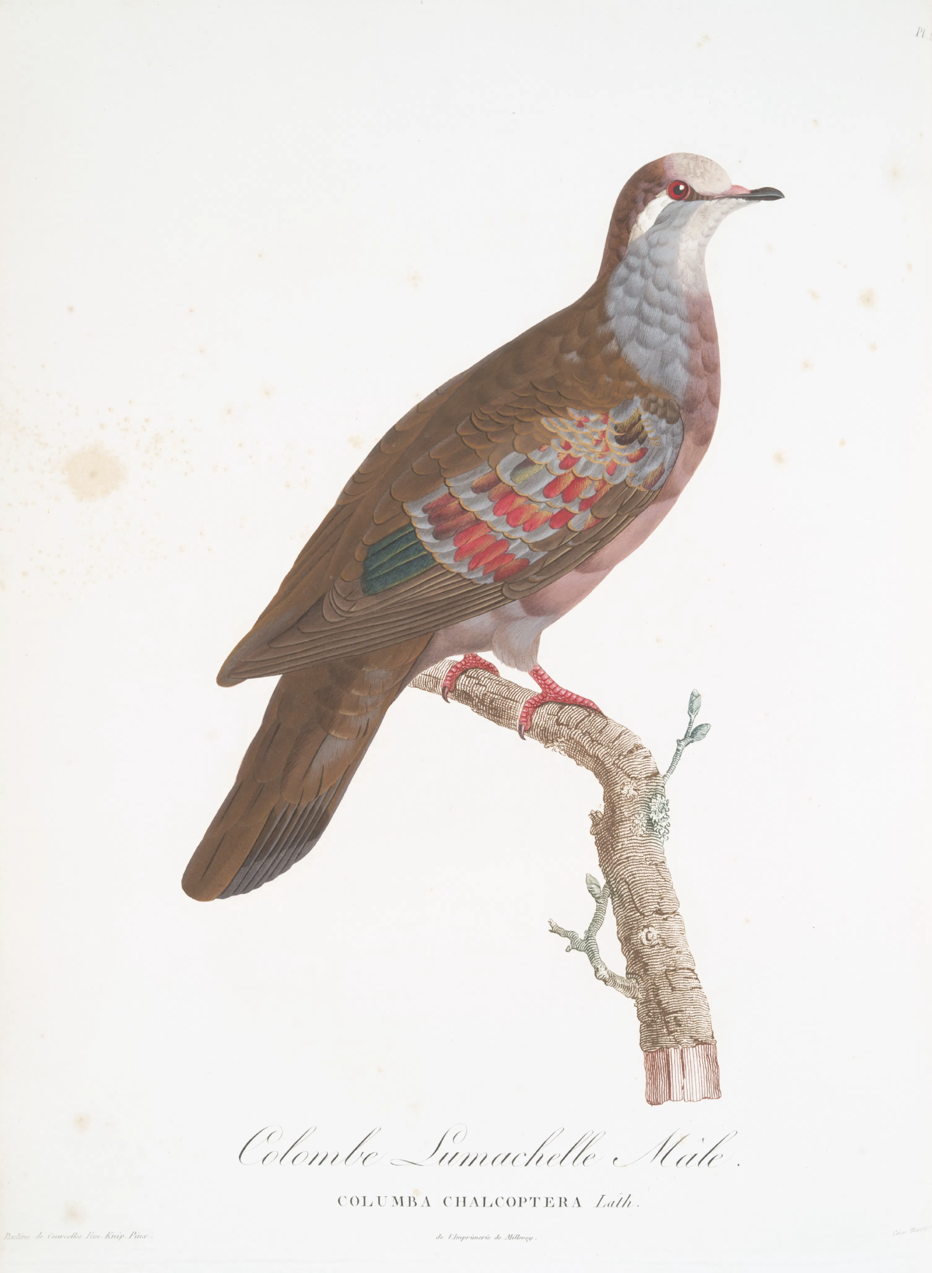 该作品由法国自然历史画家Pauline Knip,她师从名家,以精湛的水彩技巧描绘了80多种鸠鸽科鸟类。