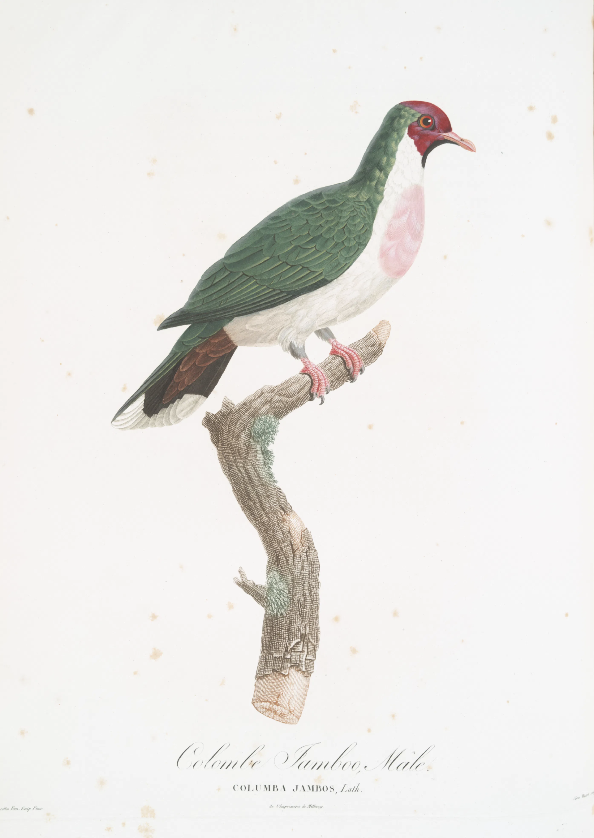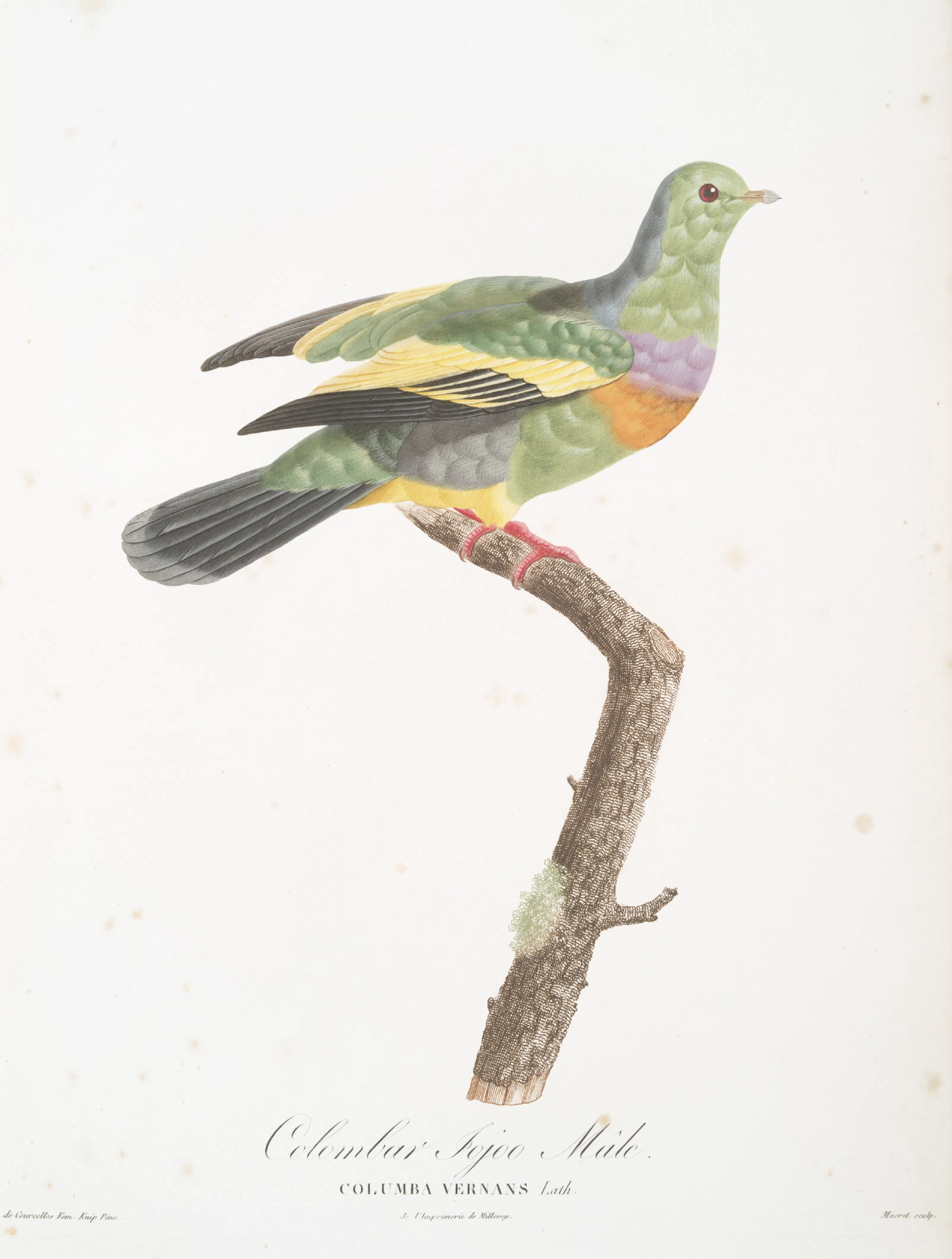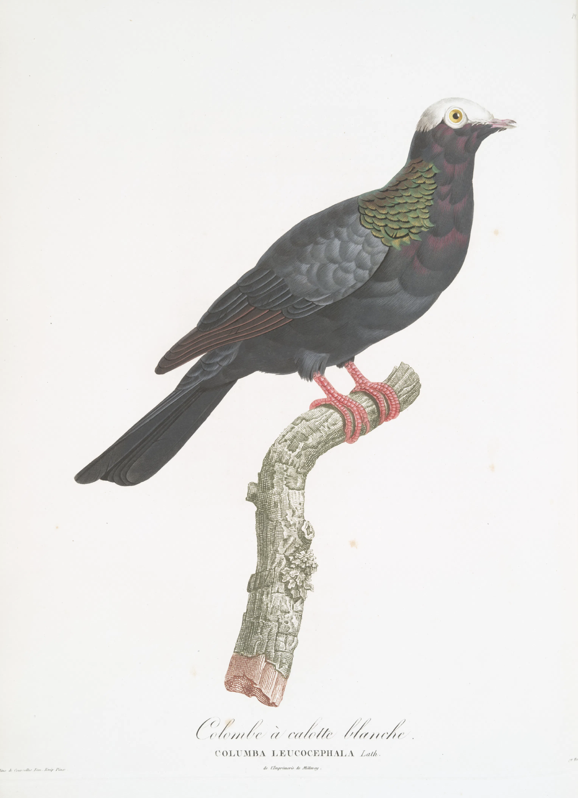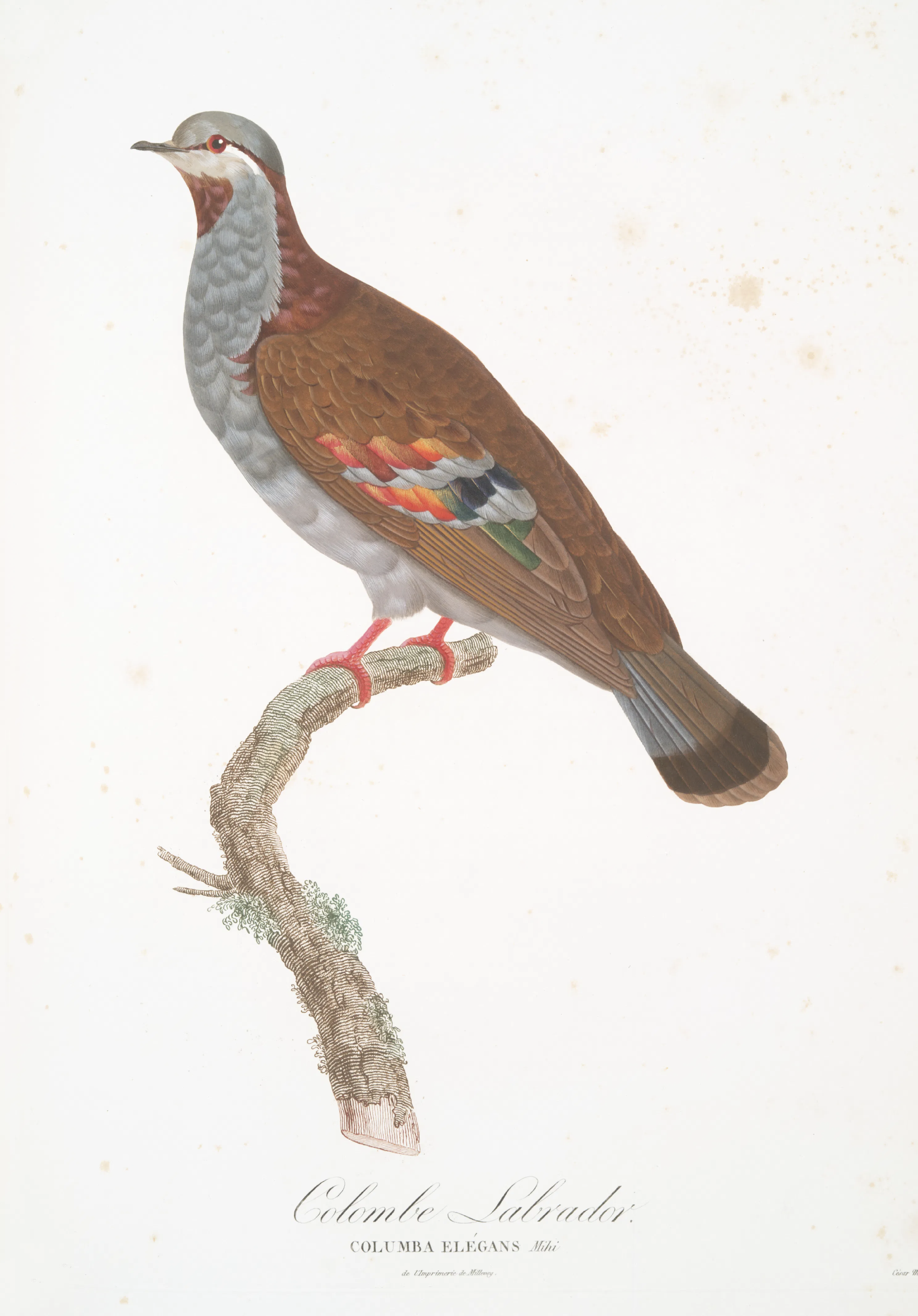 该作品由法国自然历史画家Pauline Knip,她师从名家,以精湛的水彩技巧描绘了80多种鸠鸽科鸟类。