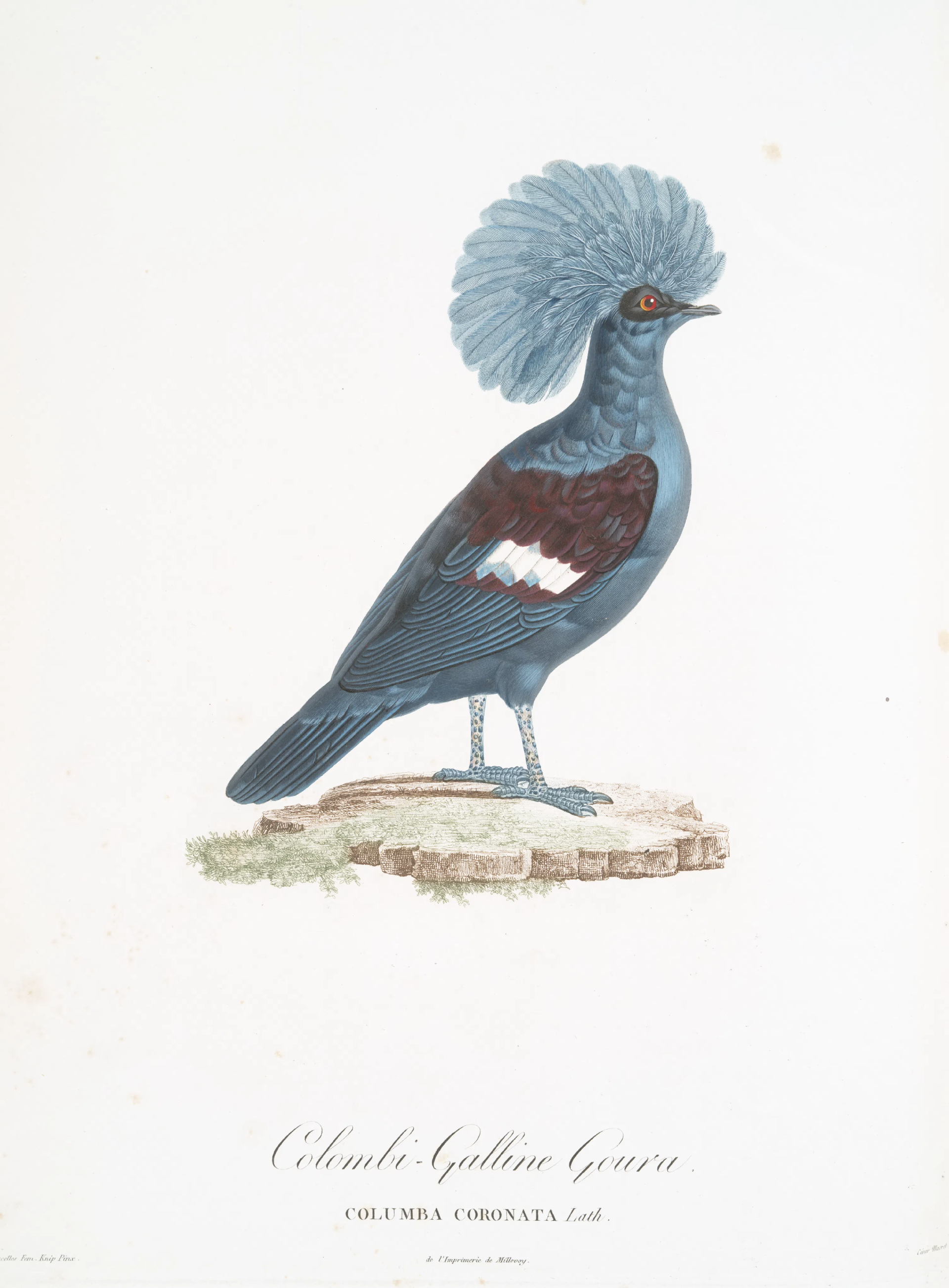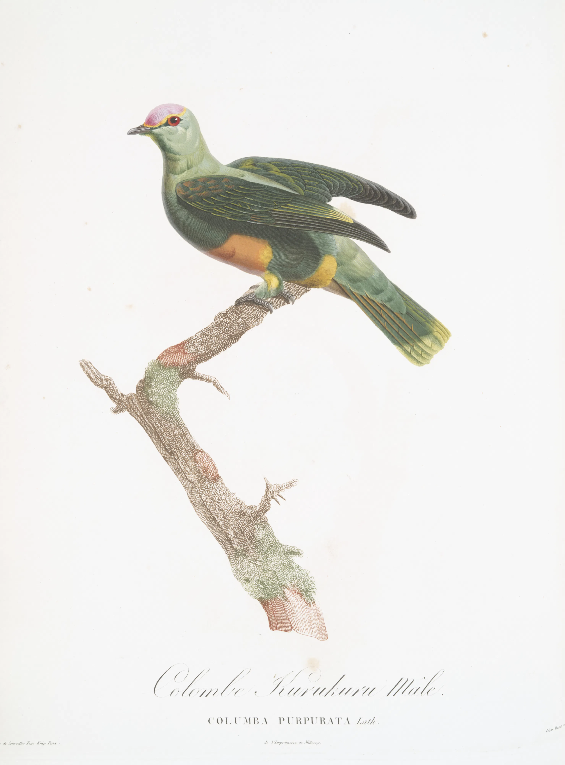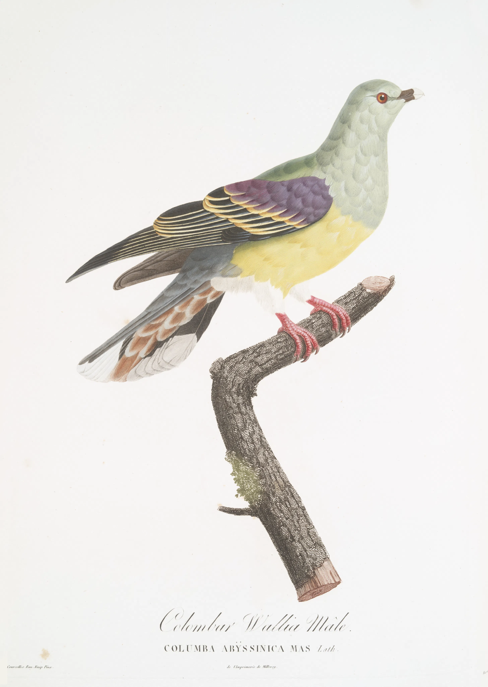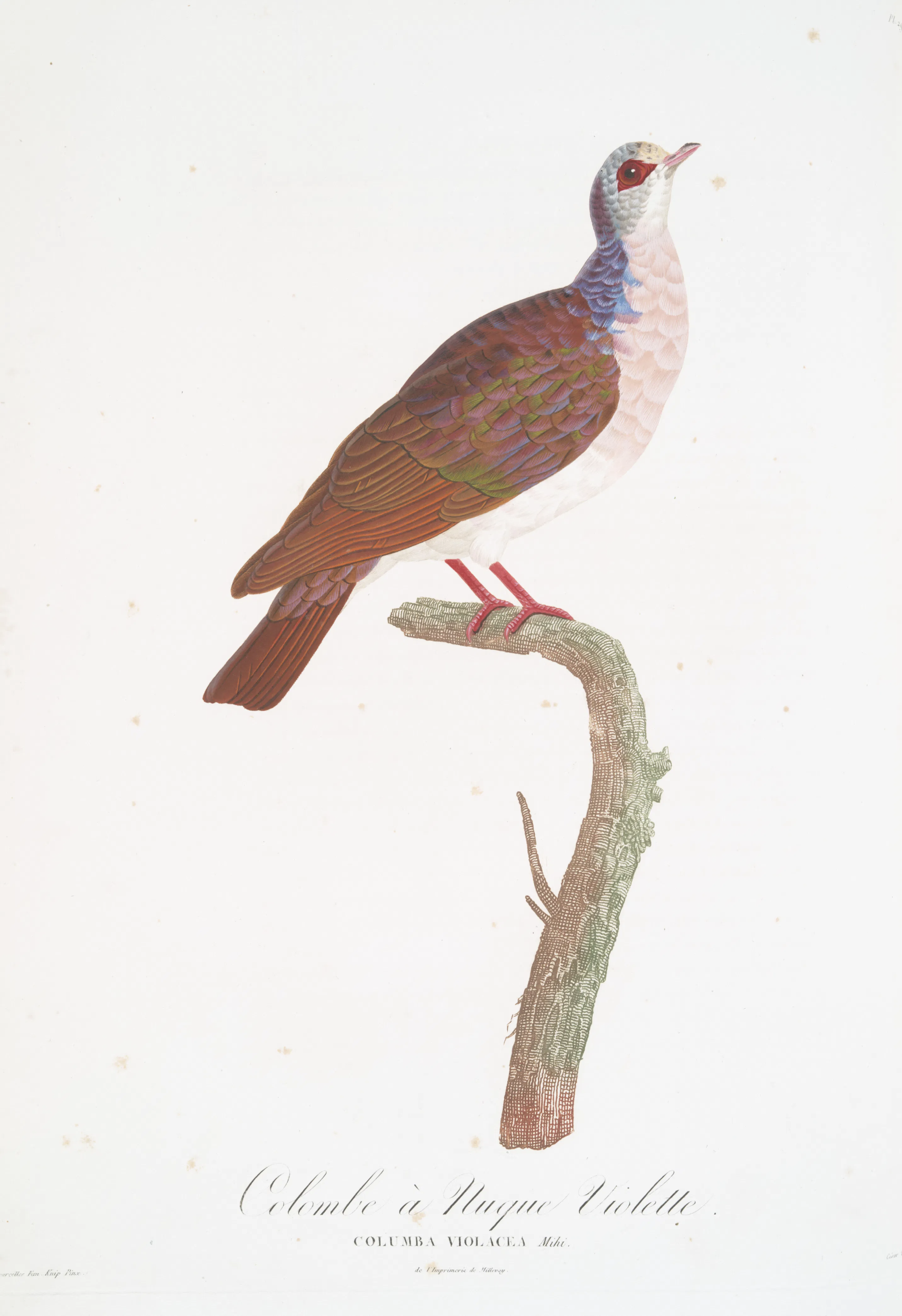 该作品由法国自然历史画家Pauline Knip,她师从名家,以精湛的水彩技巧描绘了80多种鸠鸽科鸟类。