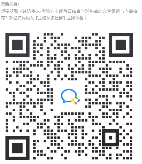 关注【经济学人全球商业评论】公众号,后台回复“虎嗅入群”,即可加入【主编领读社群】体验《经济学人·商论》主编的每日主题领读!