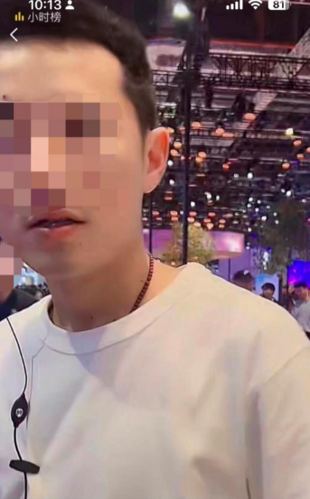 据上游,近日上海车展的宝马MINI展台风波不断,继冰淇淋事件之后,4月20日又发生了女子在展台直播被拖走事件。4月22日,被拖走的女子Tongtong及其老公曹先生接受了上游新闻记者的采访,回忆了当天发生的事情经过,同时要求宝马MINI、白衣男子(推搡者)以及相关保安(拖拽者)公开道歉。图为白衣男子(推搡者)。