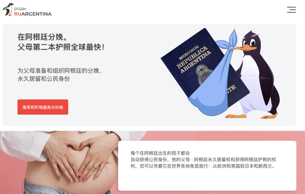 经营的生育旅游中介机构Eva Pekurova表示,阿根廷护照的最大优势是可以得到在欧盟、英国、日本等171国的免签,加上首都拥有优良医疗服务,故而让部分俄罗斯公民向往。