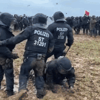 德国警察迅速触出击,企图恢复煤矿的正常生产工作,但不料在前进过程中陷入泥潭,遭到环保主义者的嘲笑与泥块袭击。