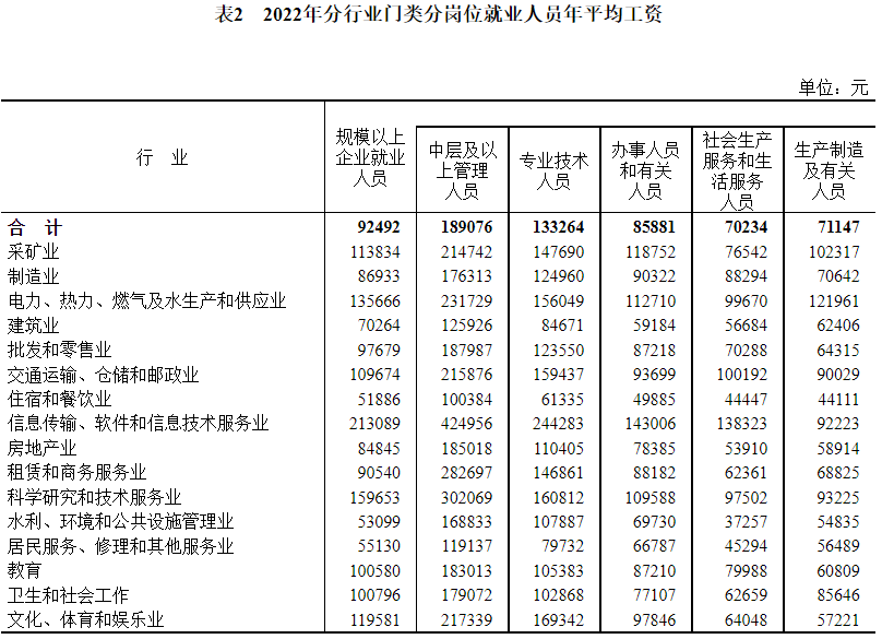 5月9日,国家统计局发布2022年平均工资数据,2022年全国城镇非私营单位就业人员年平均工资为114029元,比上年增加7192元。2022年全国城镇私营单位就业人员年平均工资为65237元,比上年增加2353元。无论是在城镇非私营单位还是在私营单位中,就业人员年平均工资水平排在前三位的行业均为技术含量较高的信息传输、软件和信息技术服务业,金融业,科学研究和技术服务业。分地区看,无论是在城镇非私营单位还是私营单位中,工资水平都是东部最高,东北最低。