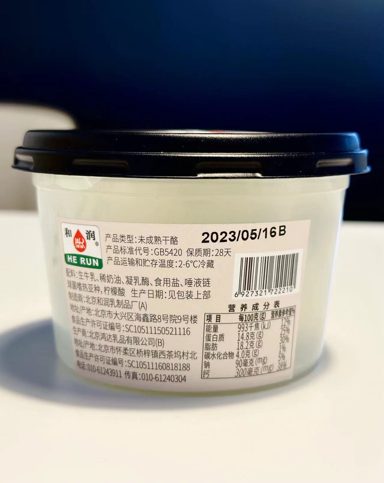 每次在充斥着再制干酪、奶酪制品为主的儿童奶酪棒产品的超市冷柜里看到和润的新鲜奶酪都会觉得看到了一股市场上的清流,因为它更新鲜,更真材实料。真要抛开预算做一个放心给家人吃的好奶酪,还是要选择这样新鲜的原制奶酪。 缺点: 希望新鲜奶酪的产品线可以尽快丰富起来,现在主要还是以新鲜马苏里拉和周边衍生为主。希望可以取环球新鲜奶酪之长,把布里,马斯卡彭,艾门塔尔这些种类都国产化。