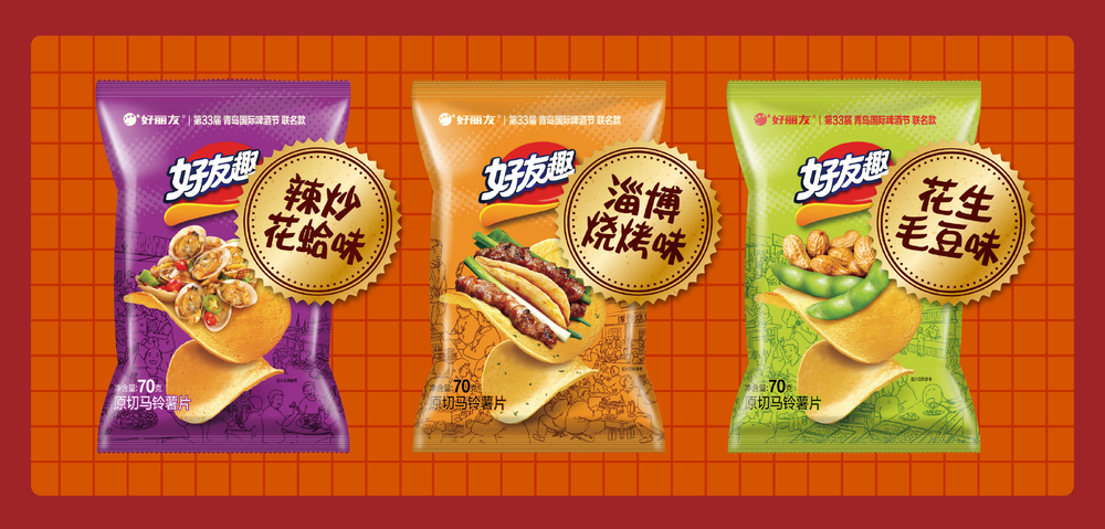 4、好丽友联名青岛国际啤酒节,推出“淄博烧烤味”等山东特色风味好有趣,打造“哈酒新搭档”