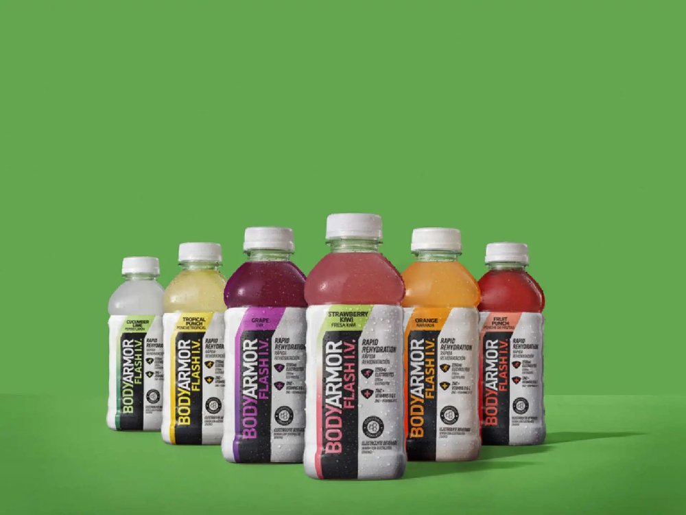 运动饮料品牌BODYARMOR在美国推出首款快速补水饮料BODYARMOR Flash I.V.。产品使用了椰子水,带来更好的风味和口感。每瓶20盎司饮料中含有 2200 毫克电解质,高于传统运动饮料,帮助快速。这款饮料还添加了锌、维生素B和C,支持免疫系统健康。目前亚马逊售价为5瓶27.78美元。 BODYARMOR CEO表示,新品目前仅在北美部分地区商店上市,并将在2024年覆盖线上线下更多渠道。品牌将通过这款产品在味道和电解质水平上挑战Electrolit,和Gatorlyte。