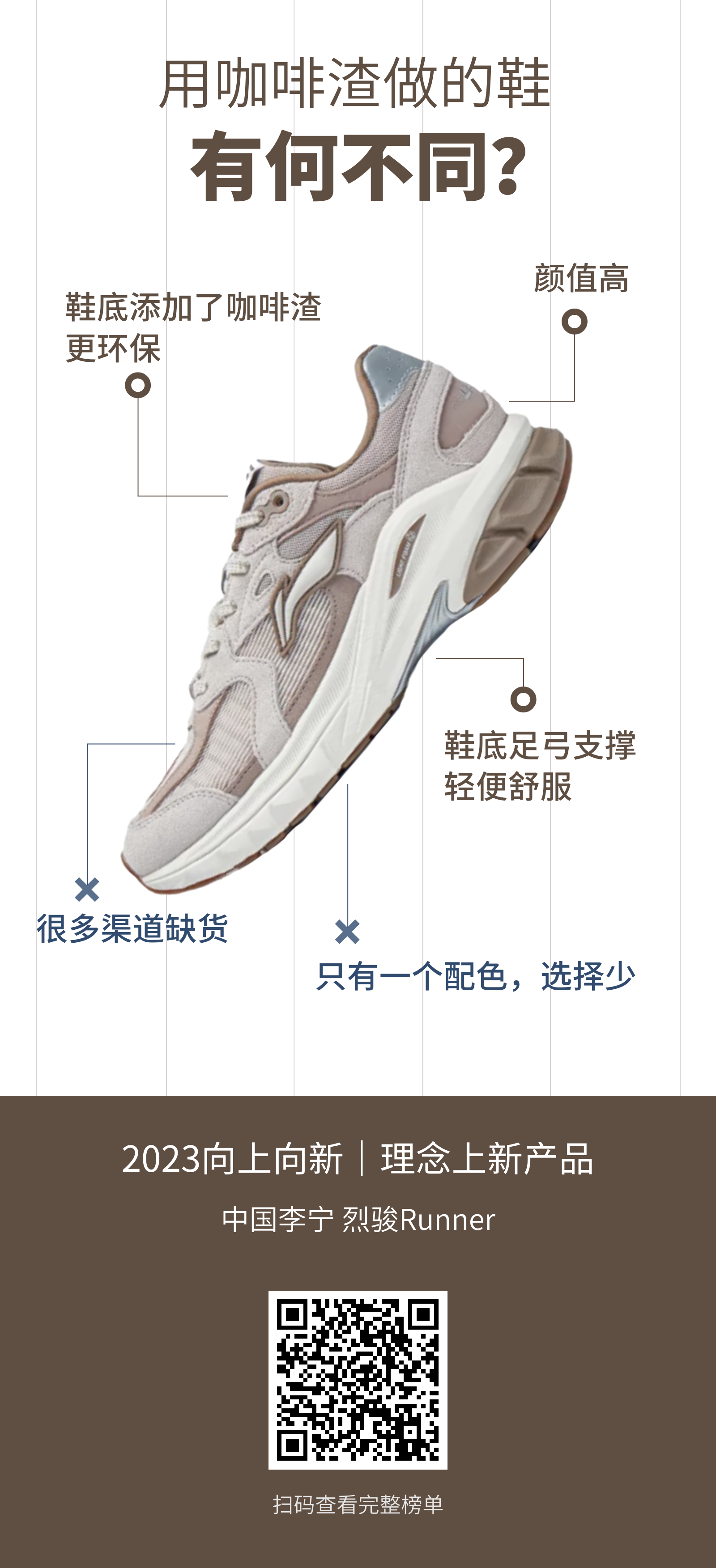 今年春夏中国李宁上新的烈骏runner系列,是在2022年2月正式立项的。当时,黄成宇只有做一款环保鞋的想法,但具体用什么样的环保元素来呈现,其实他也还在思考。