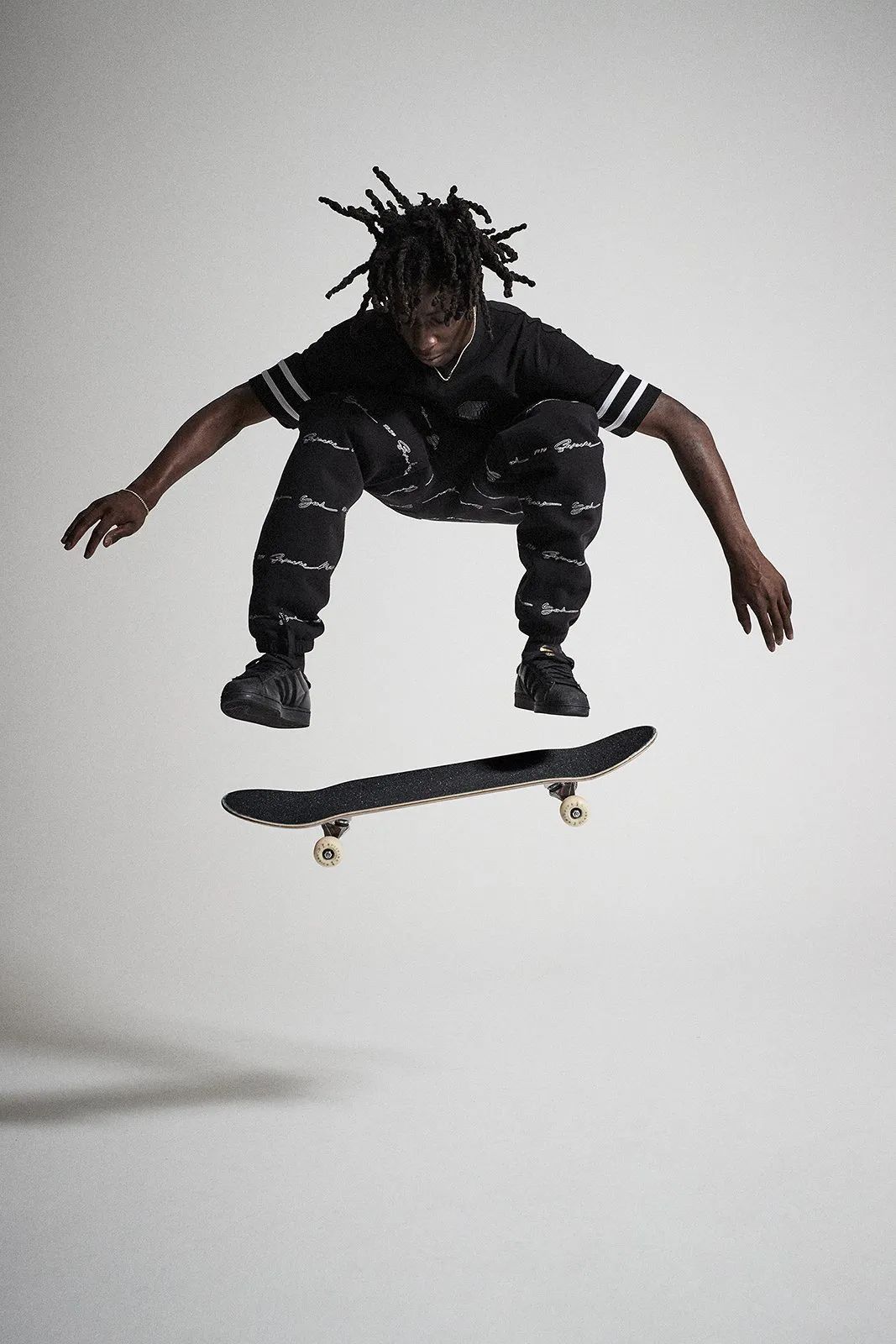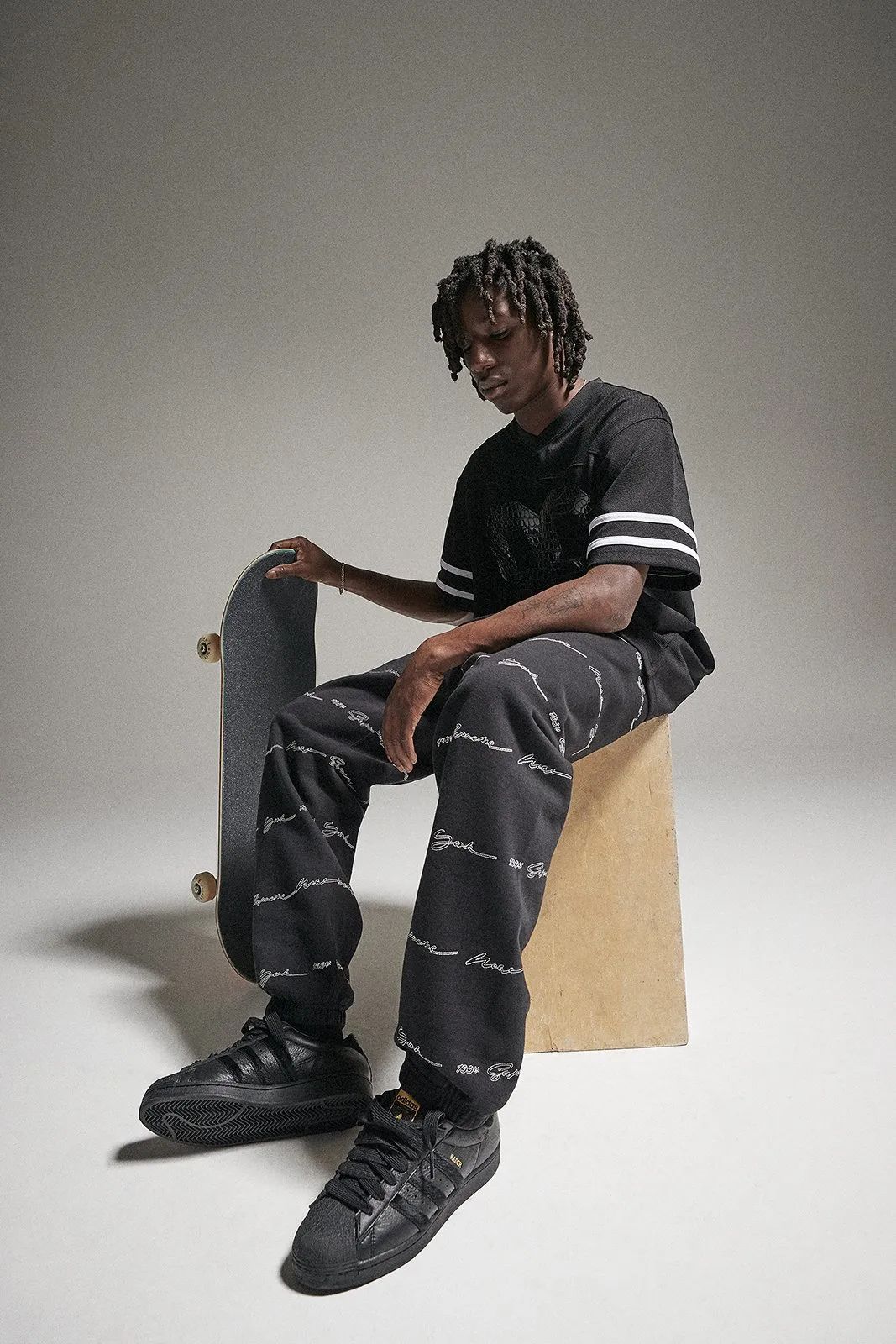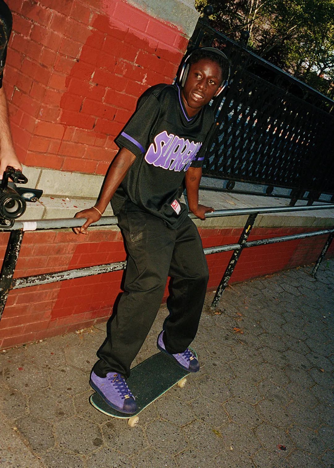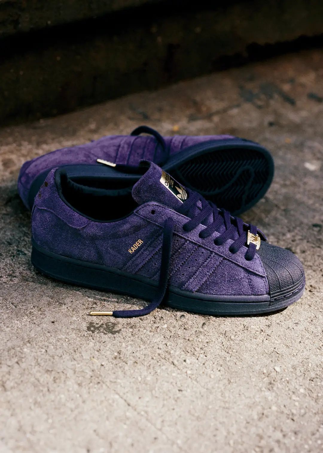 自从 adidas 招募了 Tyshawn Jones、Mark Gonzales、Blondey McCoy、Jason Dill 等一批著名滑手,组建出一支滑板团队后,这些滑手都陆续对 adidas 的标志性鞋款进行了改造。而其中让我感觉最惊喜的,就是 adidas 与团队中的职业滑手 Kader Sylla 合作的鞋款了。在两次合作中 Sylla 都选择了 adidas 经典的 Superstar ADV 鞋款,首次合作,先以质感黑色示人,而第二次合作大胆的以紫色麂皮包裹鞋面,加上金色的配件与 Kader 个人名字,骚气的配色让我第一眼就爱上了!