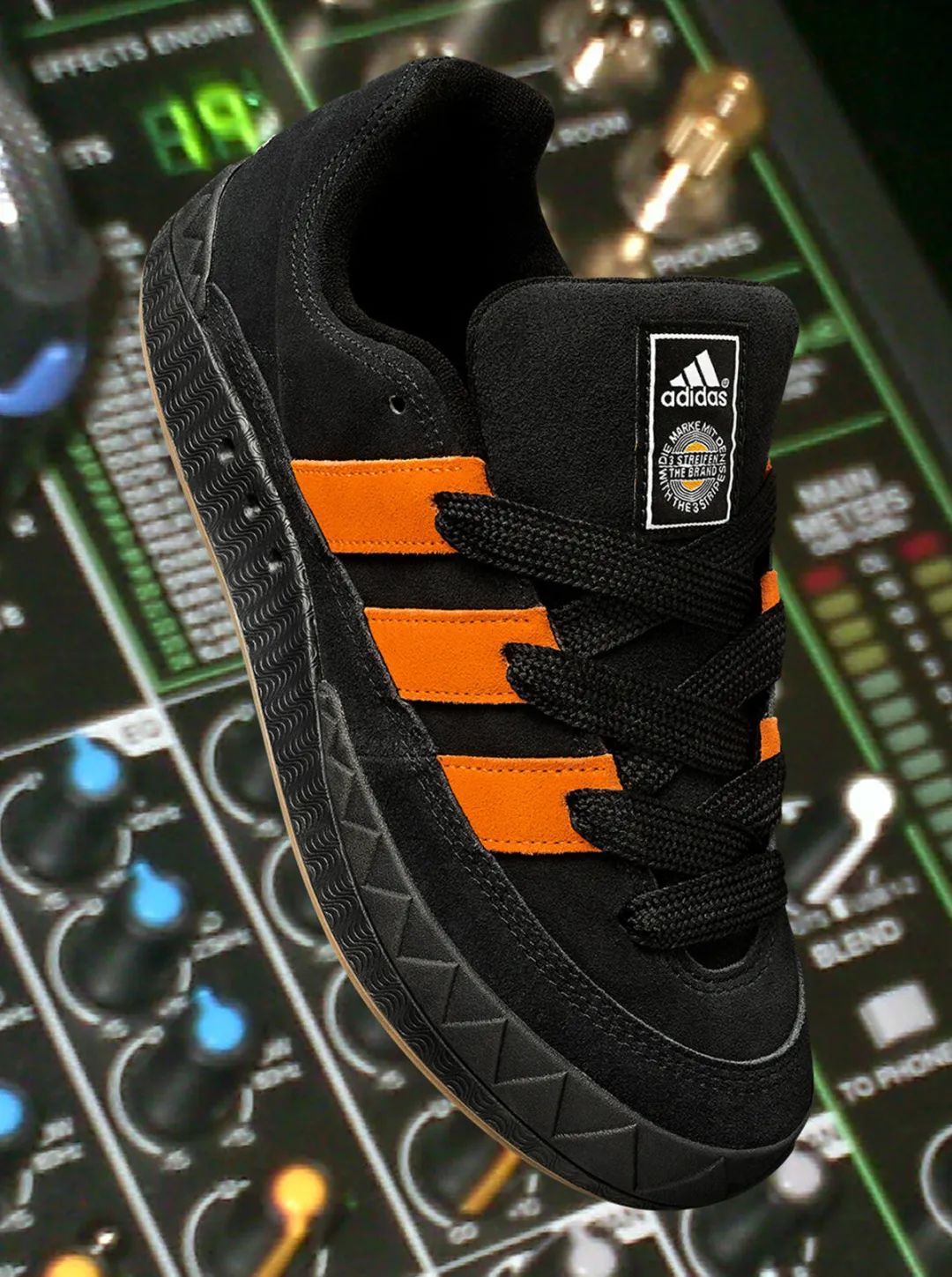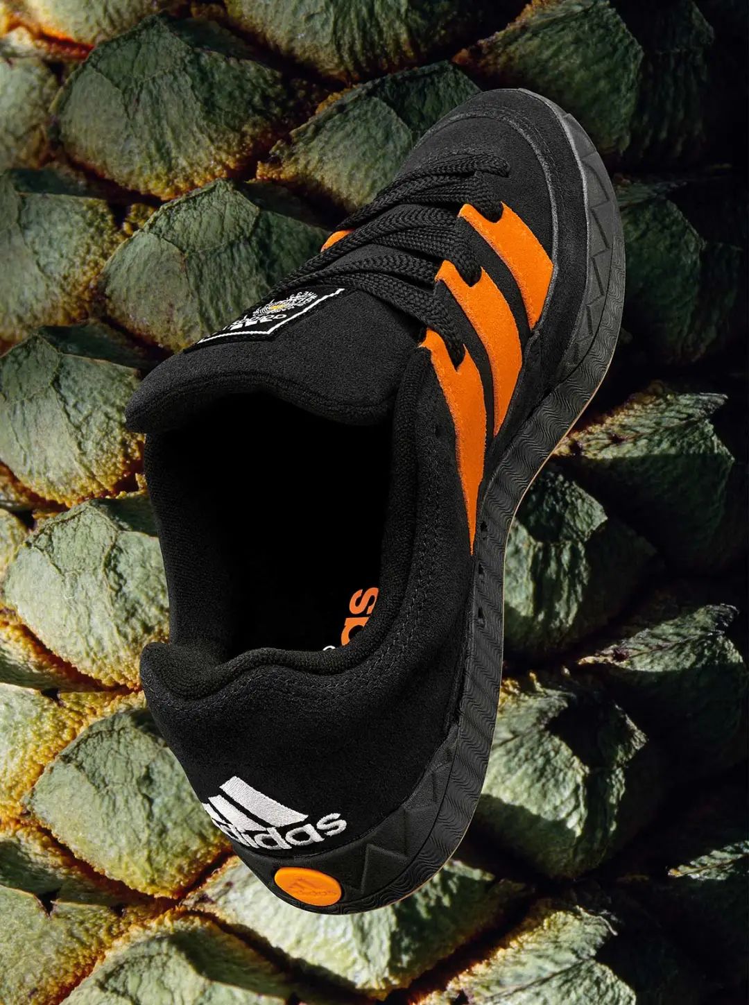 作为 PALACE 签约的职业滑手,Jamal Smith 的滑板水平自然无需置疑。在 adidas 重新带回自家滑板鞋 Adimatic 后,Jamal Smith 也是很快就与 adidas 达成了合作,选择自己最爱的橙色作为主色调,覆盖鞋身处的 adidas 三道杠 Logo,鞋面与中底选用了大片黑色装饰,黑橙的配色也是让 Austin 一下子联想到了“万圣节”的感觉。