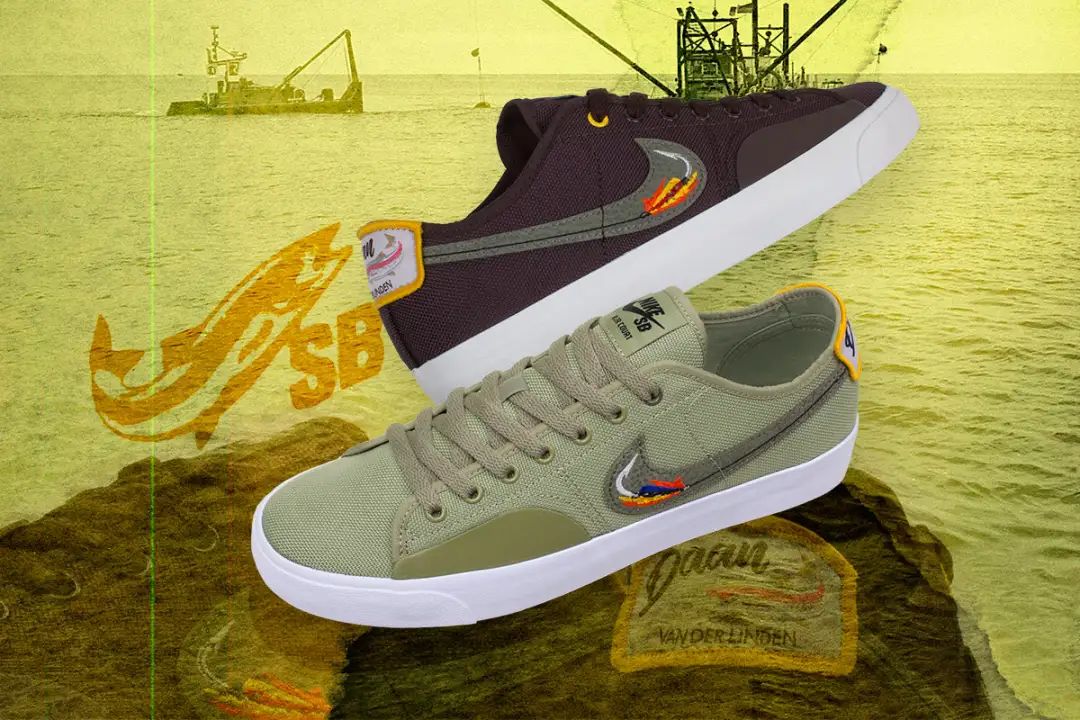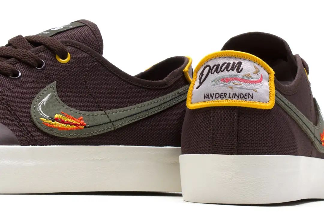 滑手除了滑板还有什么爱好?Daan Van Der Linden 通过与 Nike 的合作告诉我们,钓鱼也可以是一个新选项。如果 Daan Van Der Linden 不在滑板上时,那他就是在去钓鱼的路上,所以在与 Nike 合作的 SB Blazer Court 鞋款上也以自己的这个爱好为灵感,钓鱼的元素出现在鞋身的每一处,比如鞋跟处鳟鱼的贴补设计以及 Nike Logo 上的鱼钩刺绣,连鞋垫上也印有鱼的图案,再加以全帆布面料包裹鞋身,如果有和 Daan Van Der Linden 一样喜欢滑板与钓鱼的朋友,强烈建议入手哈哈,毕竟作为一双合作鞋款它的价格才 199!