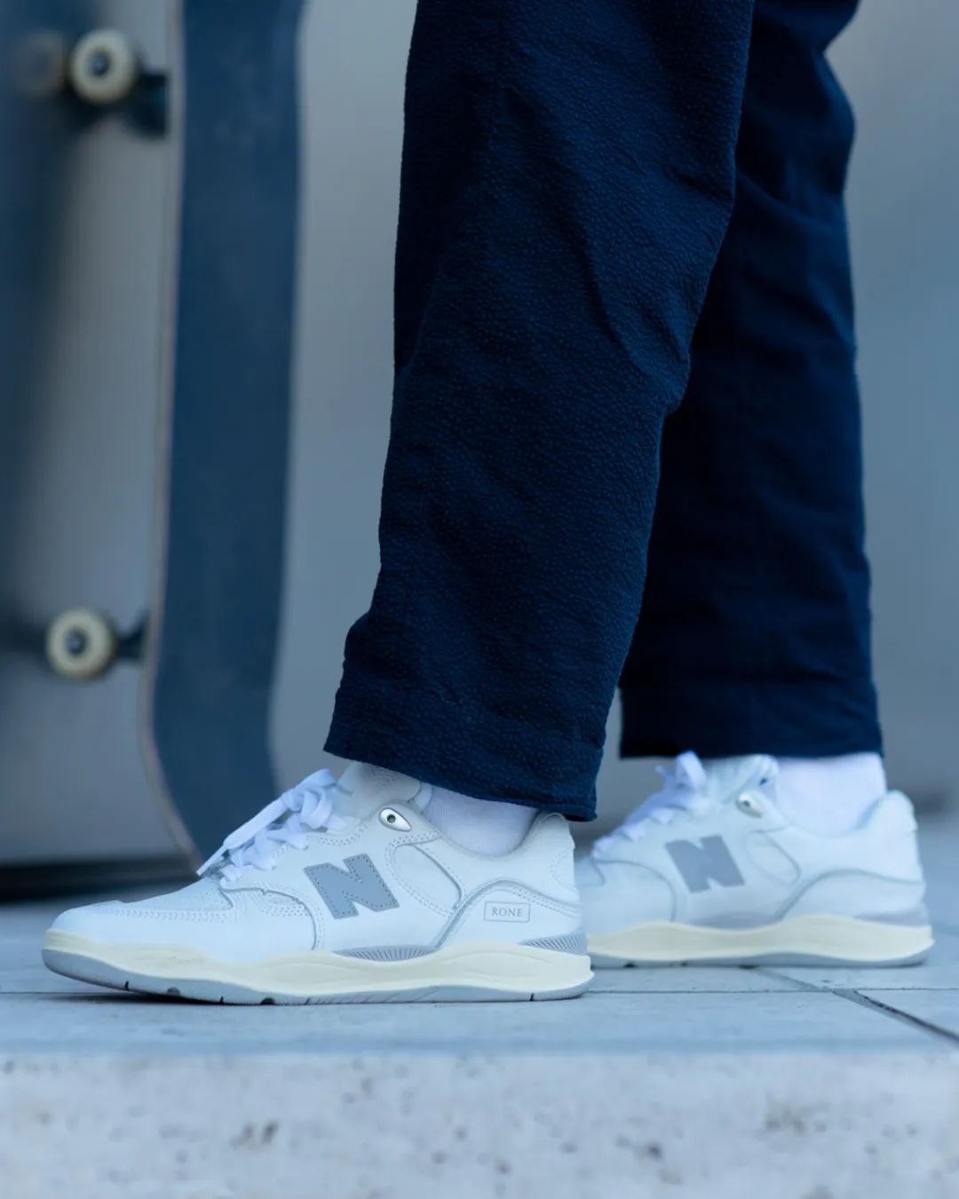 我猜很多朋友都不知道 New Balance 原来也有自己的滑板鞋吧。这双 Numeric 1010 原来就是为专业滑手 Tiago Lemos 设计的 90 年代风格鞋型,而 New Balance 在与加拿大职业滑手 Tony Ferguson 的合作中,也是再度将这双 Austin 非常喜欢的鞋款带回。在设计上这双 Numeric 1010 仍然保持了 Tony Ferguson 对极简主义的偏爱,整个鞋身只保留了 New Balance 的 “N”Logo 与 Tony Ferguson 个人品牌 Rone Footwear 的简写。整体的灰白配色也有 New Balance 一贯简单的复古美学。最后加上奶油色的氧化中底使外观更加复古,日常搭配与滑板两不误!
