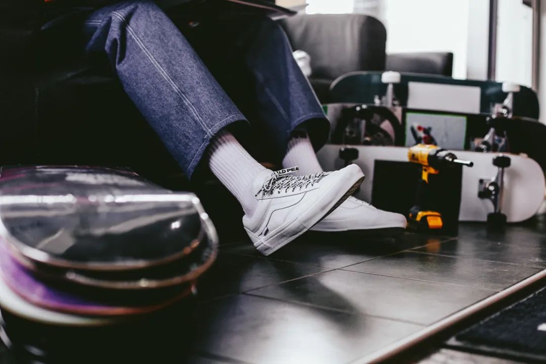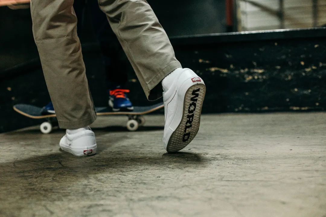 考虑到不是所有人都喜欢穿 90 年代的那种“面包鞋”滑板,那这双 Vans 与 Justin Henry 的合作绝对是最佳选择!首先鞋面就是最简单的纯白色,但白色的皮革鞋面又有种融合日常与运动的美感。其次,作为一双联名鞋款,TA 真的是太低调了,最明显的特点就是外底和鞋带上印着的“World”和“Peace”字样,但都隐藏在难以发现的角落,就连 Justin Henry 的个人签名也是低调地印在鞋舌上,对于喜欢低调的滑手朋友而言可以考虑考虑 TA。