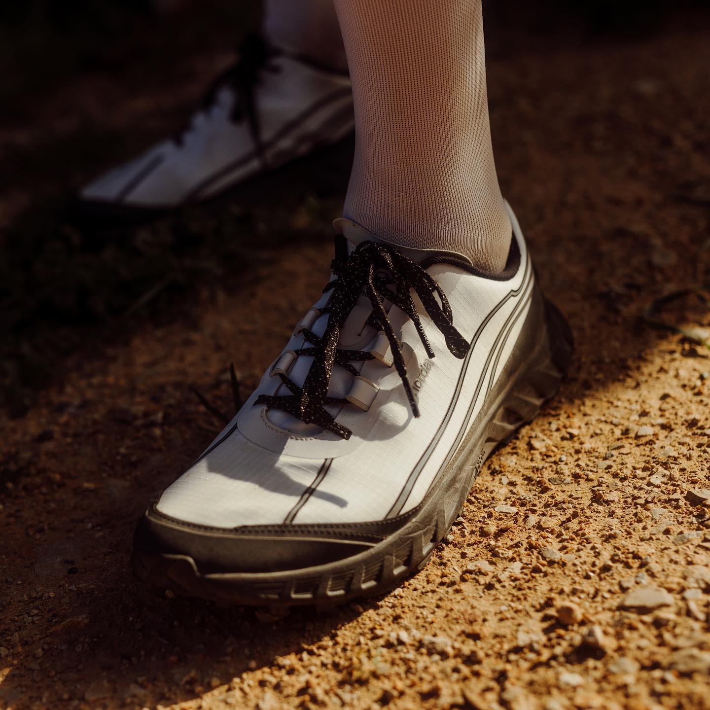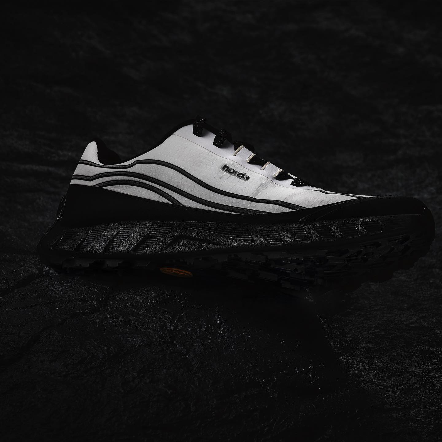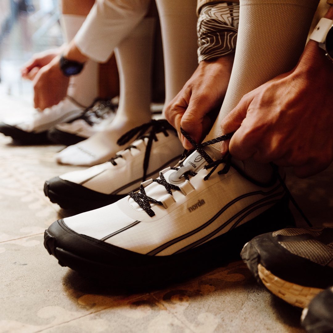 第一站,我们先来到加拿大。作为一个成立时间仅仅三年的越野跑鞋品牌,norda 的 001 已经给人留下了深刻的印象。这是他们最近推出的 002,被称为是世界上反应最灵敏的越野跑鞋。其采用光滑、更接近地面的薄底构造,大大增强身体与地面的联系,与 Vibram 合力打造的中底和外底也具备一定的缓震性能。再有鞋面采用高性能的 Dyneema 纤维制成,主打轻盈透气和耐用,据说比钢材要强韧 15 倍,甚至连鞋带也是由 Dyneema 制成,极其耐磨。