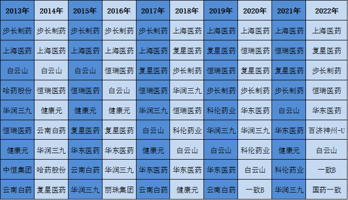 2013年至2022年每年销售费用前十企业名单 来源:根据wind数据整理