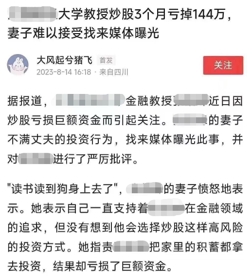 往远了说,牛顿(苹果砸头上那个)炒股赔掉10年工资。