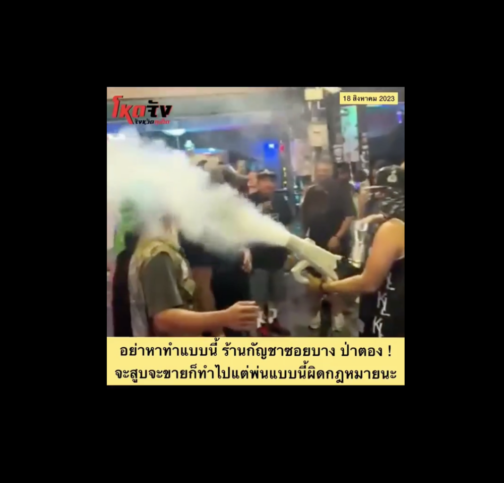 据泰国普吉岛警方称,在泰国热门旅游景点芭东海滩,一名美国游客在自己的烟雾机里装满大麻,并向街道喷洒大麻烟雾,场面一度陷入疯狂。