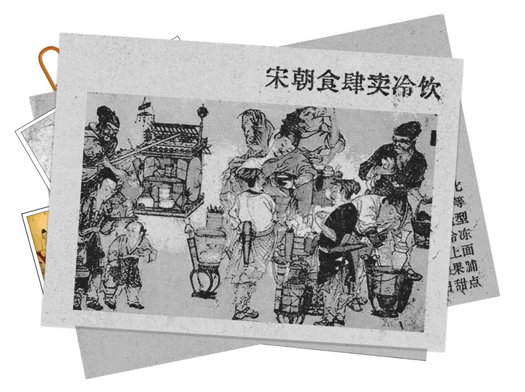 孟元老的《东京梦华录》记载,开封府街头有“当街列床凳,堆垛冰雪”的商贩。宋末元初的《武林旧事》描述了杭州街头贩卖的冰饮,雪泡豆儿水、雪泡梅花酒。