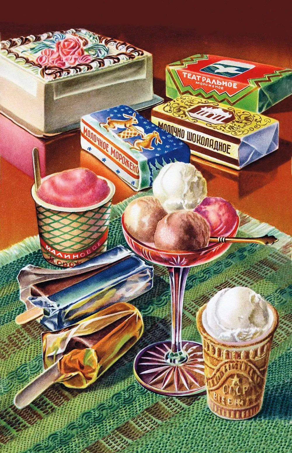 1932年,冷冻食品工业兴起。在莫斯科和列宁格勒的中央大街上,穿白大褂的女性售货员从装有冰的木盒子里拿出了冰冻美味——被闪亮锡纸包裹的雪糕。