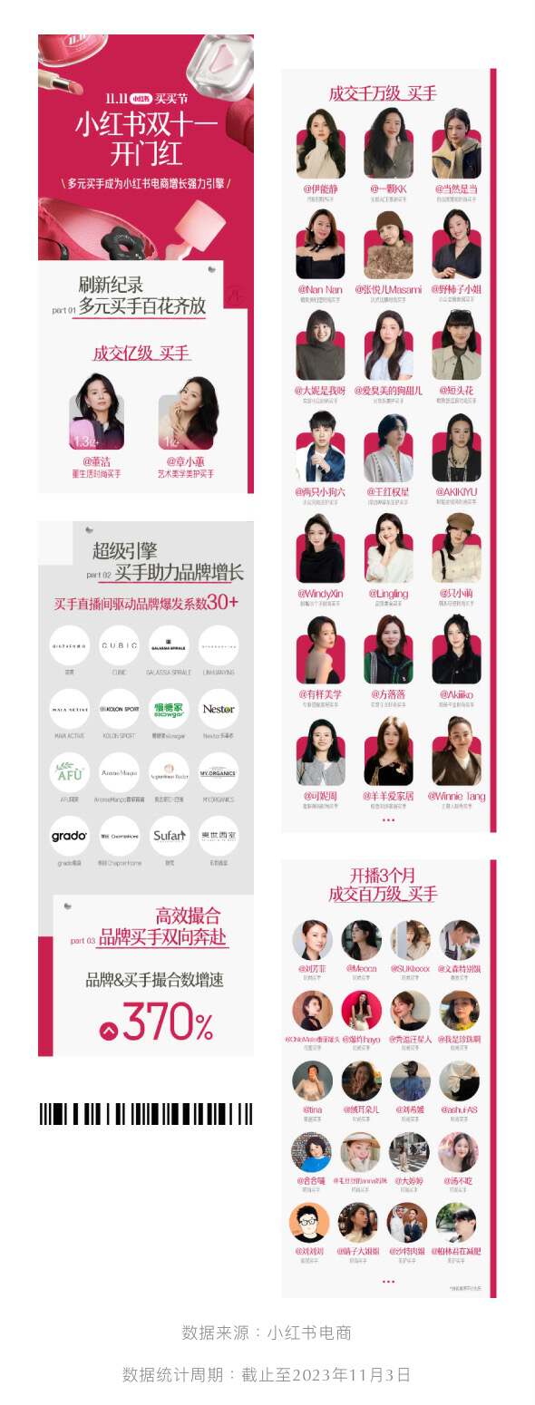11月3日,小红书交出了「买手电商」的第一份双11成绩单,官方战报显示了小红书电商在不做预售情况下的上半程战绩,数据显示,批量的新买手入了gmv千万量级别,多元化的各类型买手也在小红书得到了快速成长,释放了电商经营的独特信号和信心。(来源:小红书电商)