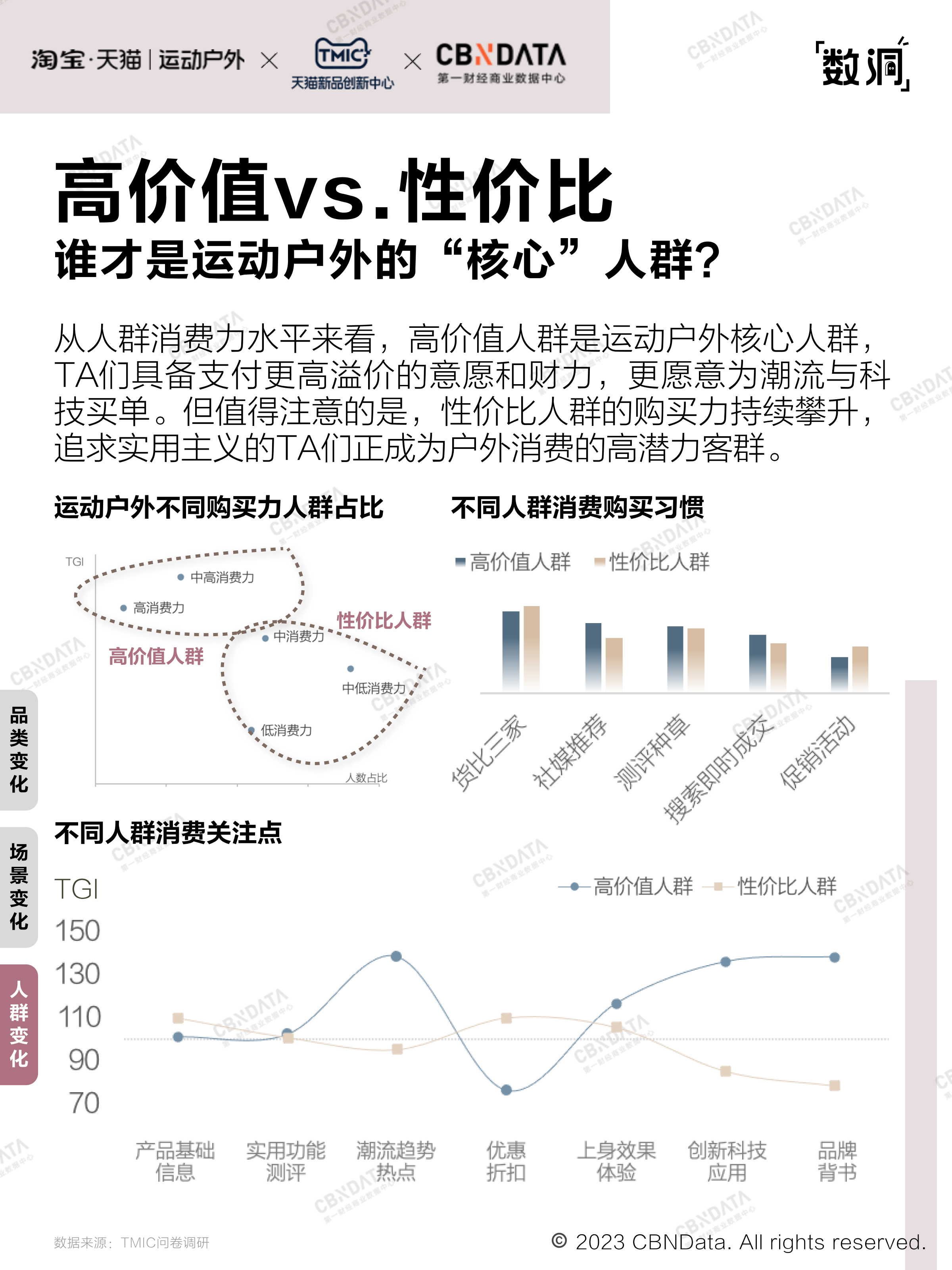身处一二线城市的高价值人群乐于为潮流科技买单,并具备为此支付更高溢价的意愿和财力;性价比人群则贯彻务实主义理念,更倾向于参与促销和折扣活动。
