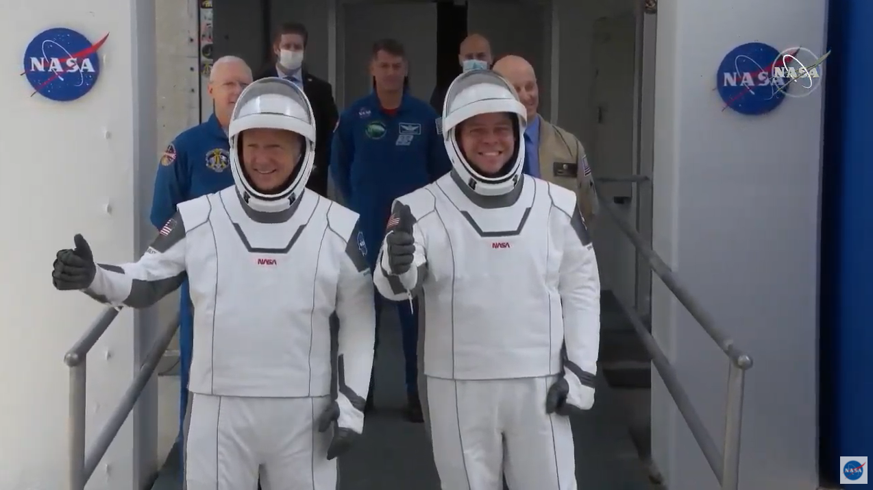 即便因为天气影响,一切发射准备工作照常进行,特朗普刚刚乘坐Air Force One抵达肯尼迪航天中心,来观看今天的发射。SpaceX载人火箭任务DM-2还有不到一小时确定是否能发射,即便在T-0:45:00充入燃料和液氧(GO/NO-GO TO FUEL)阶段,也可能因为天气原因叫停发射。