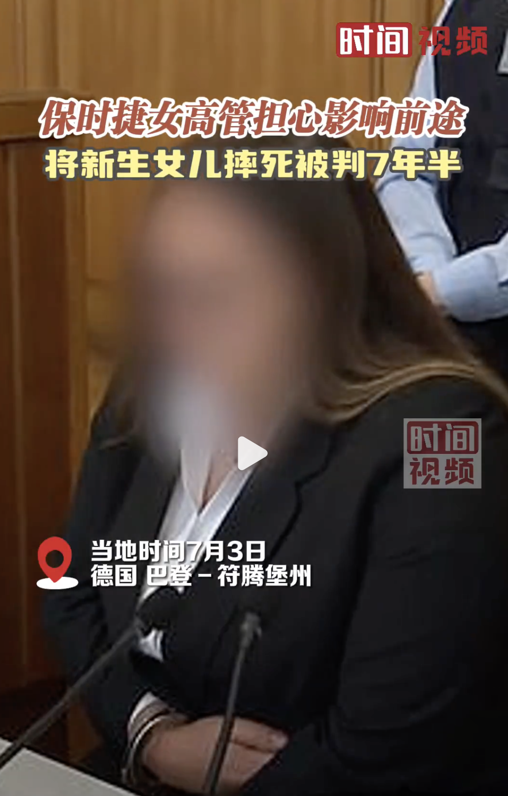德国保时捷女高管担心生育影响前途,将新生女儿摔死被判7年半。据@时间视频,当地时间7月3日,德国巴登-符腾堡州。据德媒报道,保时捷法务部一28岁女高管担心生孩子影响前途,在家中秘密分娩后将新生女儿从4米高窗户扔出。邻居发现头部受损的婴儿尸体后报警,法院以过失杀人罪判处她7年半监禁。