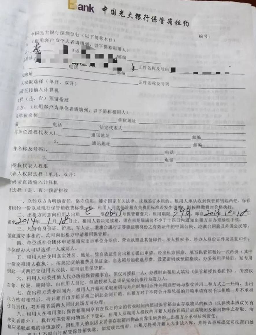 而光大银行方面在提交的答辩状中表示,双方为租赁合同关系。被告(光大银行方)已依据《保管箱租约》提供了保险箱,已依约履行完毕出租保险箱的合同义务,被告不具有管理原告储存物品的义务,不存在任何违约行为。