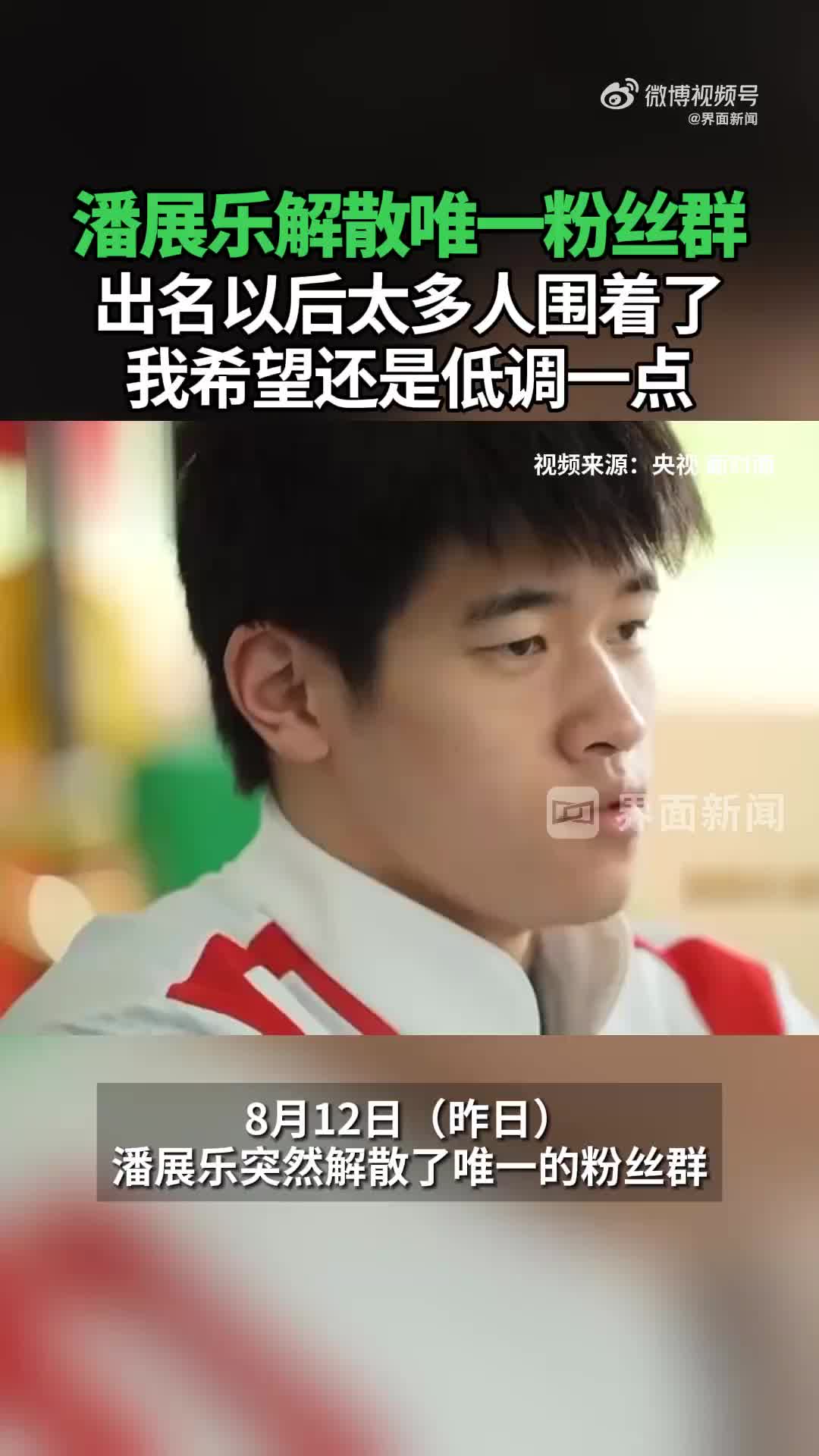 潘展乐解散唯一粉丝群,出名以后太多人围着了,我希望还是低调一点。