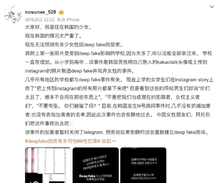 “yeon0829”也在微博上发布信息,表示韩国的换脸问题太严重了。