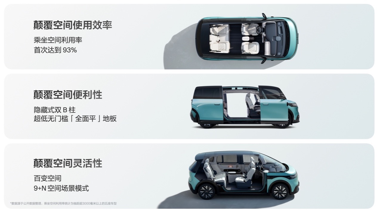相比较市面上目前的各类在售车型,极氪MIX都堪称是“独一无二”的存在。这款车基于了浩瀚-M架构打造,采用了无B柱对开门的设计。从参数上看,极氪MIX的车身长度虽然不到4.7米,但轴距却达到了3米的长度,车内有效乘坐空间占比为93%,是全球首款突破90%的量产乘用车。