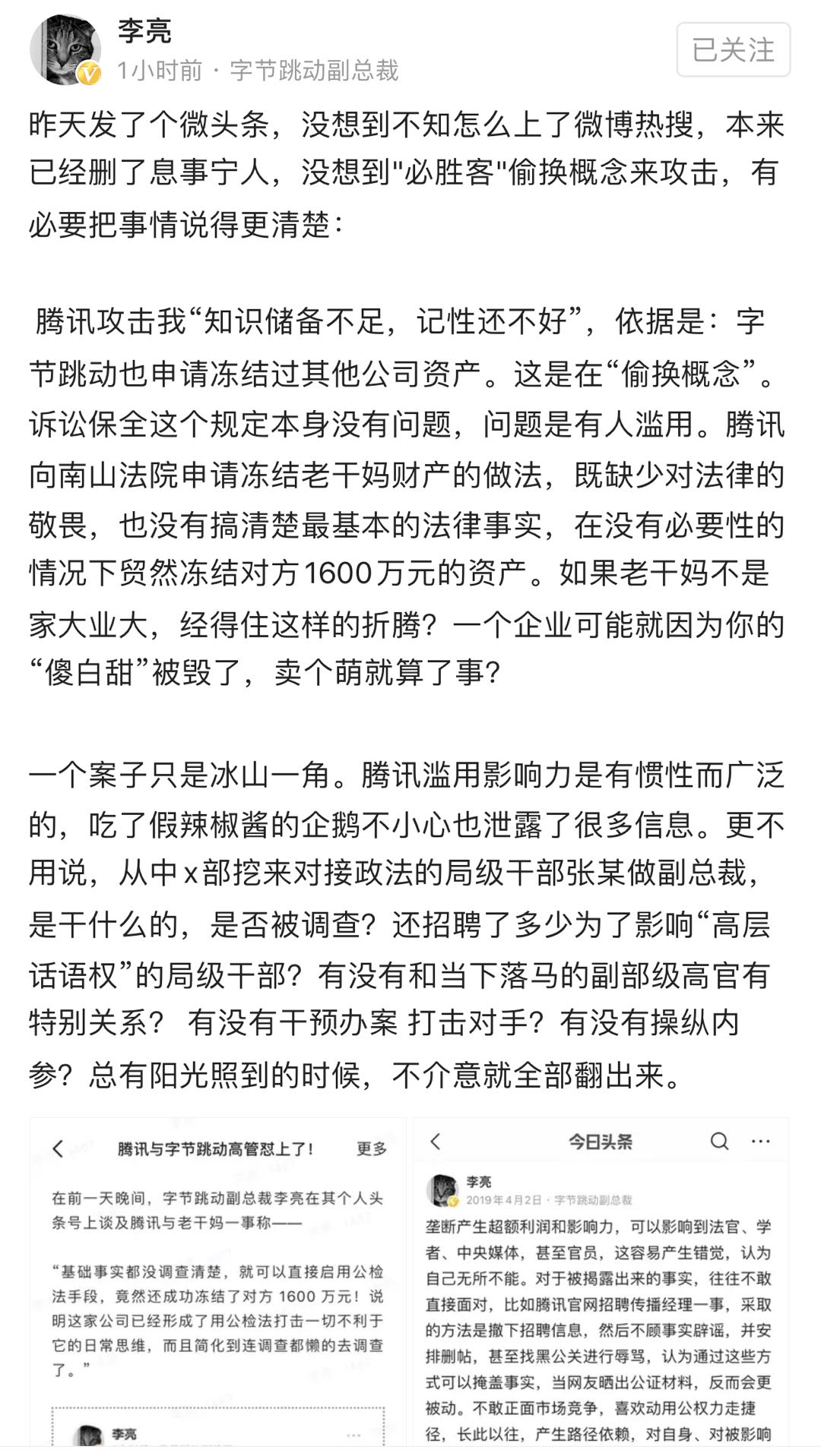 一个案子只是冰山一角。腾讯滥用影响力是有惯性而广泛的,吃了假辣椒酱的企鹅不小心也泄露了很多信息。更不用说,从中x部挖来对接政法的局级干部张某做副总裁,是干什么的,是否被调查?还招聘了多少为了影响“高层话语权”的局级干部?有没有和当下落马的副部级高官有特别关系? 有没有干预办案 打击对手?有没有操纵内参?总有阳光照到的时候,不介意就全部翻出来。