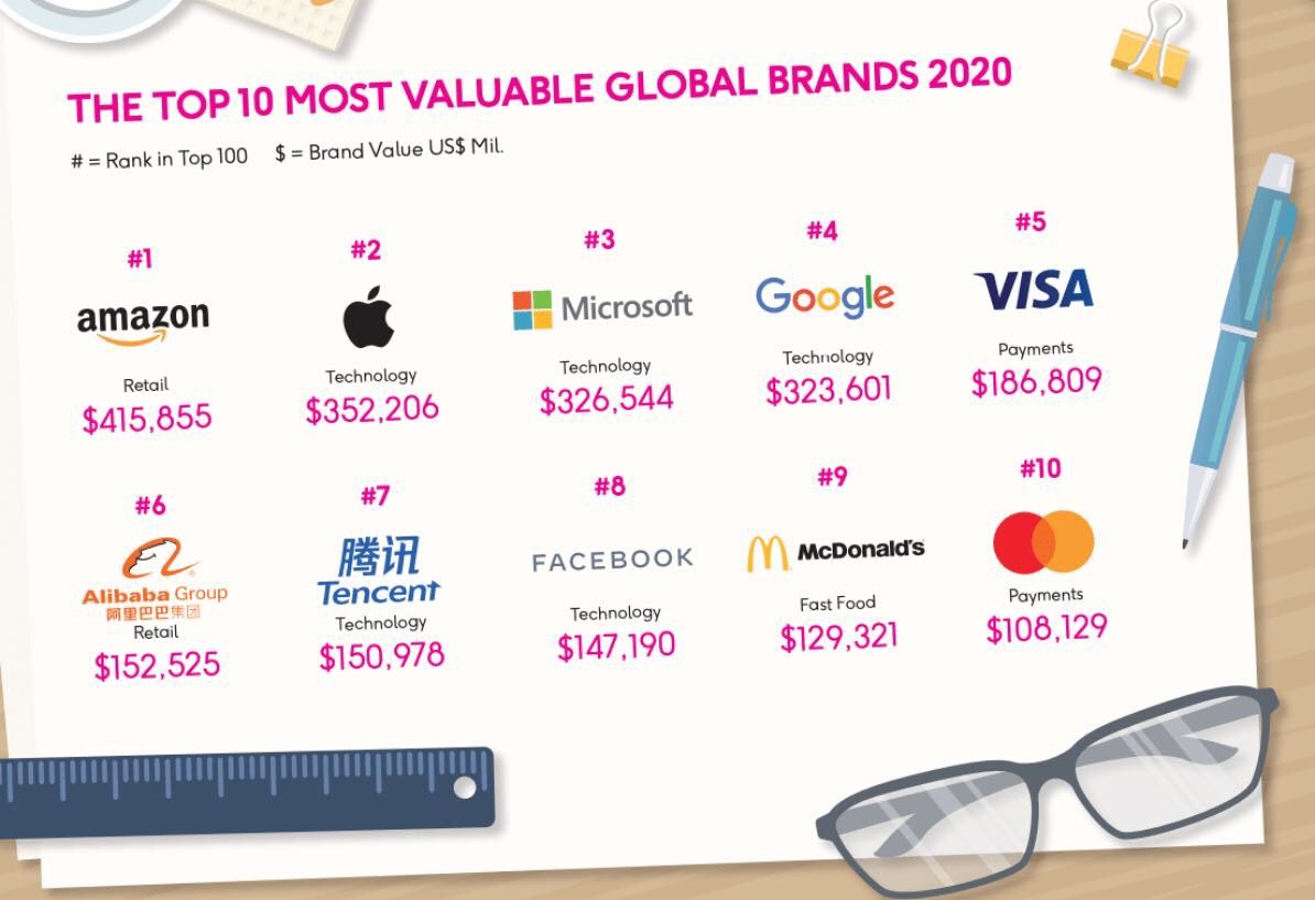 全球最有价值品牌top20,猜猜进榜三家中国公司除了阿里腾讯,第三家是谁?所有品牌里品牌价值增长最快的是谁?