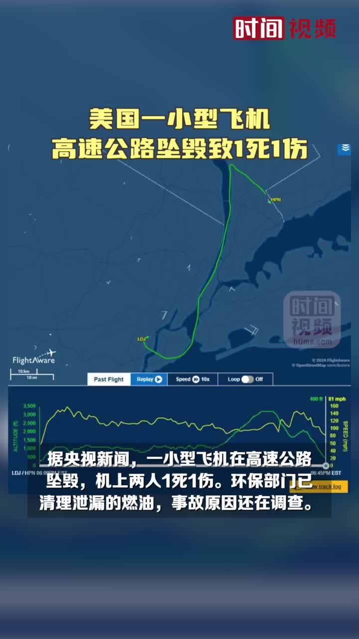 美国一小型飞机高速公路坠毁致1死1伤。据央视新闻,当地时间12月12日,一小型飞机在美国纽约州高速公路坠毁,机上两人1死1伤。环保部门已赶到现场清理泄漏的航空燃油,事故原因还在调查。 (via 时间视频)