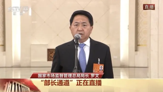 据解放日报,3月5日上午,十四届全国人大三次会议首场“部长通道”集中采访活动举行。国家市场监督管理总局局长罗文接受记者采访。