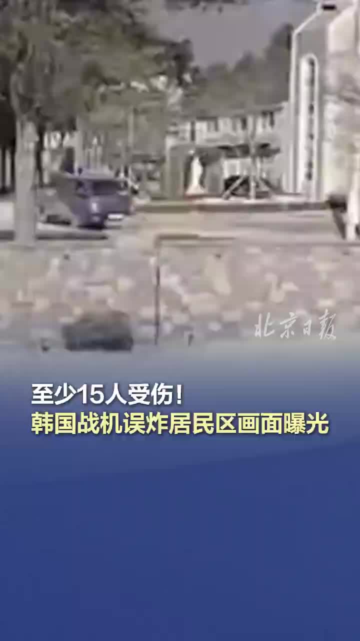 至少15人受伤!韩国战机误炸居民区画面曝光。当地时间3月6日上午,韩国空军战斗机在演习中误击居民区,造成至少15人受伤,多栋民宅受损。韩国媒体稍早前发布了居民区被击中的瞬间画面。 (via 北京日报都视频)