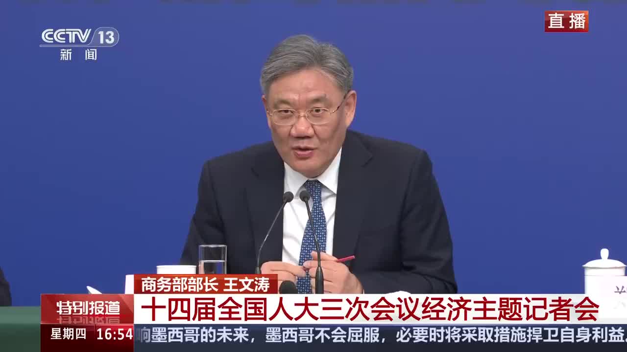 回应完整视频!中方5分钟回应中美贸易战相关问题。3月6日,商务部部长王文涛表示,美以芬太尼为由对华加征关税混淆是非、颠倒黑白。美方的贸易投资限制措施是典型的单边主义、霸凌主义,损人不利己。胁迫要挟对中国行不通也吓不倒中国。中美各自取得成功,对彼此都是机遇而非威胁。中美合作符合两国人民根本利益,也符合国际社会的期待。贸易战没有赢家,保护主义没有出路。 (via 央视)