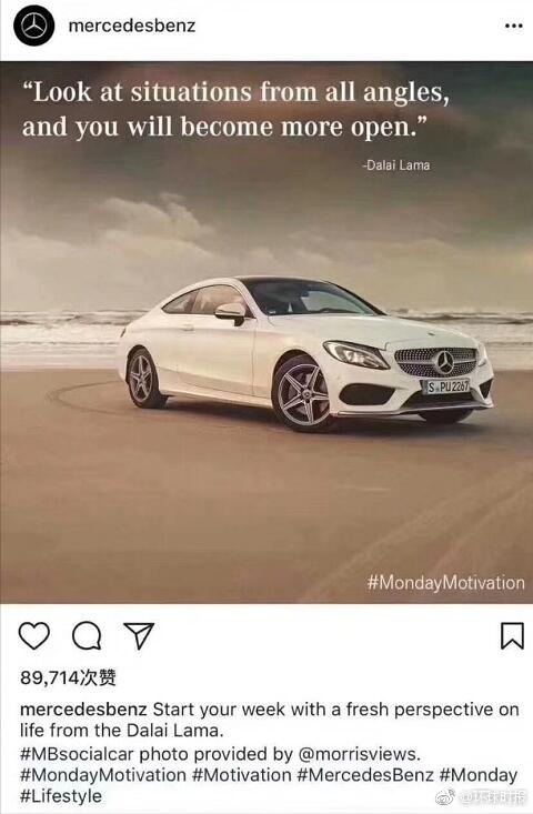 梅赛德斯-奔驰公司道歉了。今天该公司在国外某社交媒体上发布了一张有“藏独”分子达赖喇嘛元素的海报,在被网友发现后,梅赛德斯-奔驰公司称已于第一时间将相关信息删除,并对中国人民公开致歉。政治错误是公关大忌,奔驰看来是不想好好过年了...