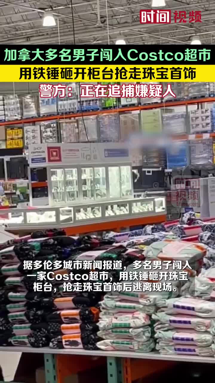 加拿大多名男子闯入Costco超市用铁锤砸开柜台抢走珠宝首饰,警方:正在追捕嫌疑人。当地时间4月14日,加拿大安大略省。据多伦多城市新闻报道,多名男子闯入一家Costco超市,用铁锤砸开珠宝柜台,抢走珠宝首饰后逃离现场。警方表示,一名超市员工试图阻止,但被其中一名男子袭击受到轻伤。目前已介入调查,正在追捕嫌疑人。 (via 时间视频)