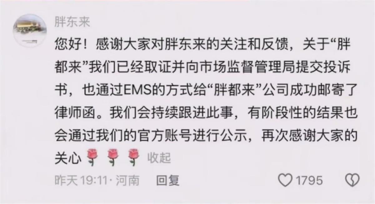 5月1日,浙江嘉兴一家名为胖都来的卖场举办开业活动。因其名称与品牌胖东来相似,引发争议。2日,胖东来方面回应称,已经取证并向对方邮寄律师函。“因为胖东来作为零售行业的知名品牌,已经有显著的辨识度。胖都来的宣传行为容易造成消费者的混淆。目前(我们)已经对胖都来的视频号、抖音进行取证,并向胖都来(所属)公司邮寄了律师函。”